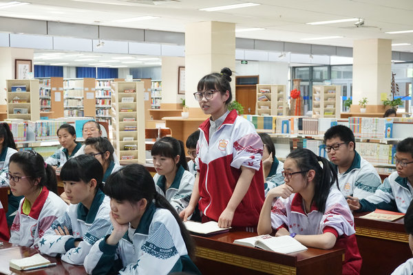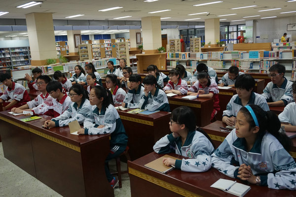 中学生杂志社1930年由夏丏尊、叶圣陶创刊,现为全国百种重点社科期刊之一。编辑们的到来,给文学社社员们打开一扇别致的窗,编辑老师们从刊物编辑的专业角度给社员们以创作的启发——从写作俗套的规避,到生活与创作的关系,再到社会热点问题、文学作品的社会责任、审视社会问题的多种角度等诸多方面对同学们予以指导。同学们就创作题材、文章形式等问题积极提问,也对社会热点问题与编辑老师们热烈探讨,还有的同学直言对《中学生》所刊作品的意见,编辑老师们一一耐心作答,整场会谈气氛融洽而热烈,社员们抓住这次创作探讨机会,积极深入地与编辑老师们交流,深得启发与鼓舞。