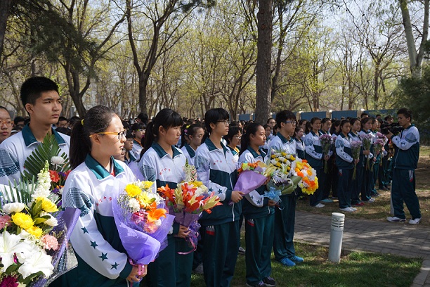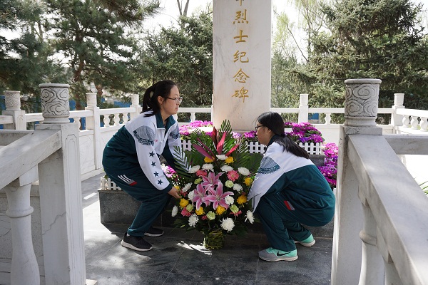潞河中学149载的光辉历史中,莘莘潞河学子在民族解放、国家崛起的斗争中用鲜血谱写了一首英雄赞歌。清明将至,我校通过展板、电子屏、班级烈士事迹学习等多种方式,宣传潞河校友烈士事迹,激发学生爱国情怀。 4月1日上午,我校组织全体初一、预科及高一年级同学来到学校革命烈士纪念碑前缅怀先烈、祭奠英魂。仪式由高一年级倪绍文、李盈盈同学主持,初一刘愿辄、赵建靓,预科吾仁玛加甫同学分别讲述了潞河学子为民族独立富强,抛头颅,洒热血的感人事迹。在庄严肃穆的气氛中,同学们在纪念碑前默哀并向烈士们敬献鲜花,表达他们对烈士的崇敬与哀思。高一(14)班宋宇翔同学作为学生代表发言,表达了新一代潞河学子铭记先烈事迹,担负历史责任与使命的决心。最后,谢宏春副校长讲话,他激励同学们铭记“一切为了祖国”的校训,继承先烈爱国之志,弘扬潞河精神,为国家发展贡献力量。活动的开展使同学们感受了潞河薪火相传的爱国传统,提升了自身的道德情操,相信代代学子将用行动使红楼光辉在历史长河中更加璀璨!