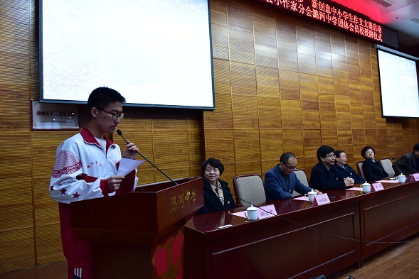潞园文学社现任社长焦家乐代表小会员表达了自己激动的心情,徐华校长也表达了对北京市作协领导的感谢和敬意,表达了继承潞河教育的优秀传统,将文学教育进行到底的信念和决心。
