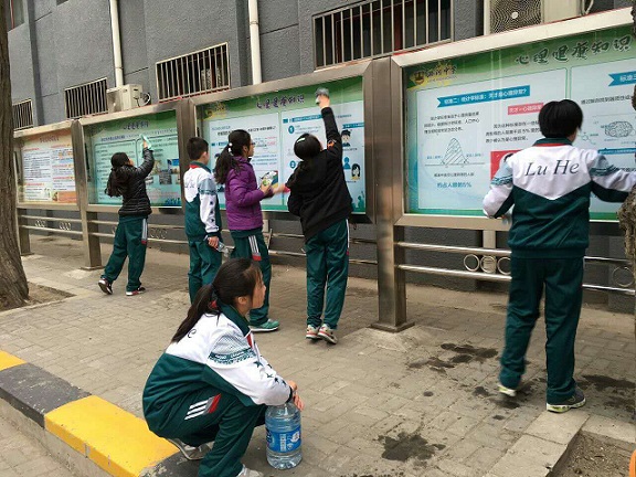 在“向雷锋同志学习”口号提出53周年纪念日到来之际,2月29日下午,潞河中学初一年级在校内外开展主题为“学习雷锋 奉献社会 提升自我”的志愿服务活动,以行动践行雷锋精神。同学们分成两组,一部分在班主任的组织下在校内擦拭橱窗、垃圾桶、拣拾垃圾、打扫报告厅……同学们不怕脏不怕累,校园到处是他们辛勤劳动的身影;另一部分在团委副书记徐甲老师、年级主任王雷老师及班主任们的带领下,来到玉带河社区,拣拾潞河北街路边垃圾、为社区居民打扫老旧楼卫生、铲除小广告,更让人感动的是班主任们也参与其中,和学生一起在尘土飞扬中挥洒汗水,得到了居民和社区工作人员的赞誉。我们相信,潞河学子将不断弘扬志愿服务精神,为建设和谐社会贡献自己的力量。