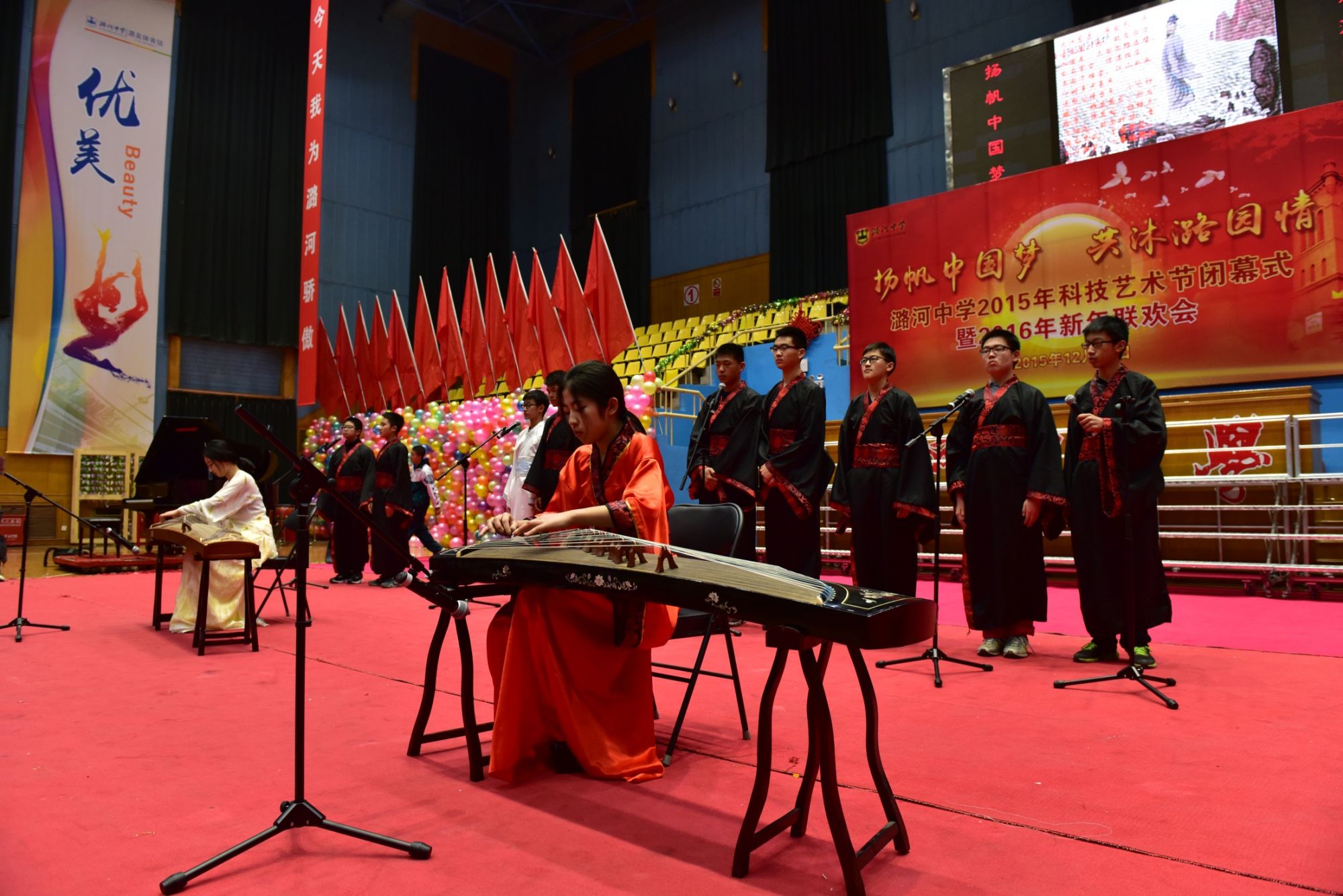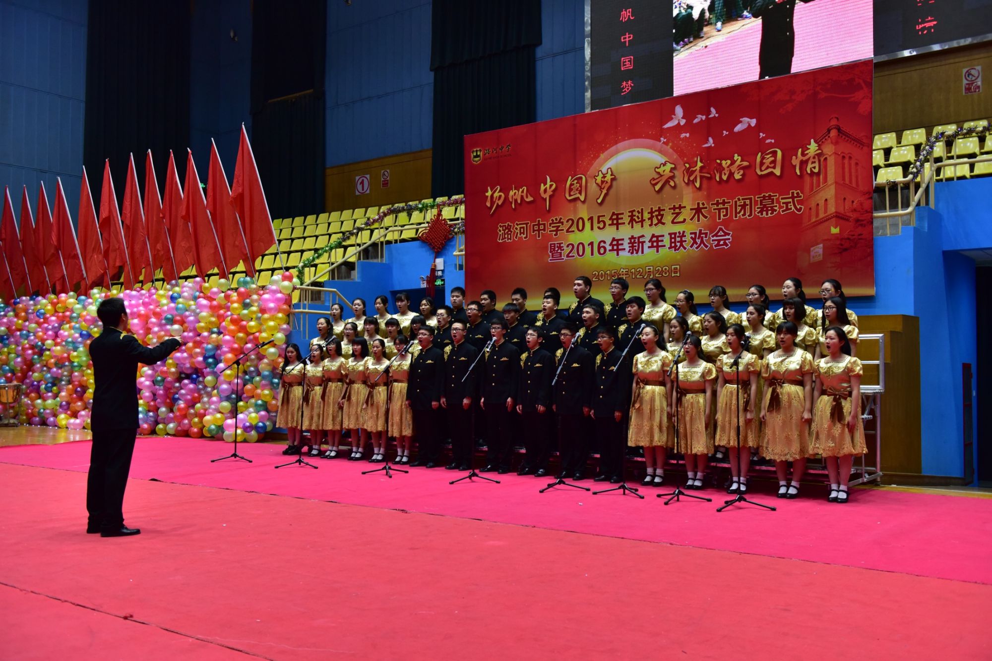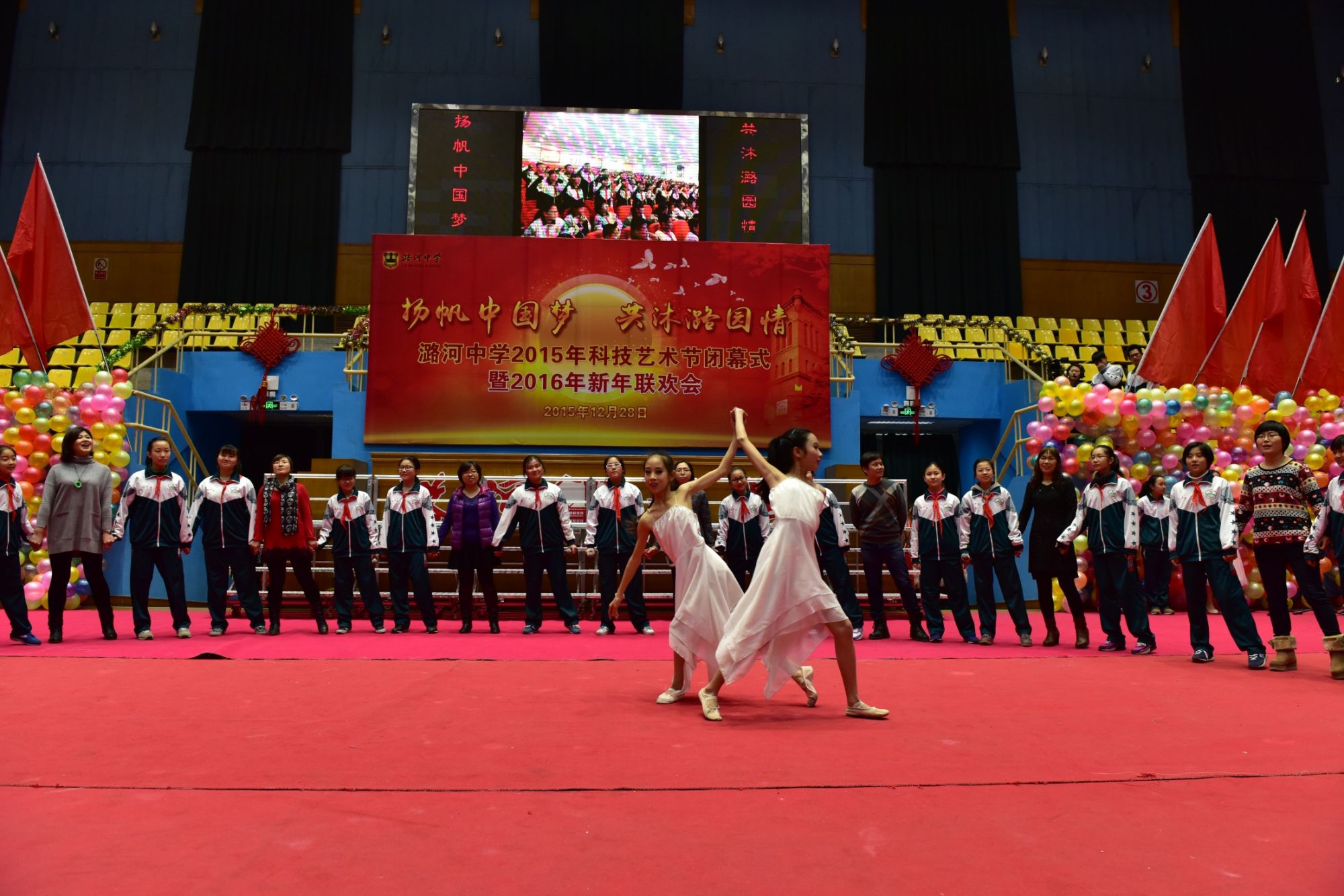 2015年12月28日下午4点10分,在潞河中学体育馆隆重举行“扬帆中国梦 共沐潞园情——潞河中学2015年科技艺术节闭幕式暨2016年新年联欢会”。联欢会在潞河中学民乐团欢快激昂的乐曲中拉开帷幕。整场活动内容丰富,形式多样,精彩纷呈。校健美操队、民乐团、舞蹈队、金帆合唱团、内高班、街舞社的精彩演出受到师生们的称赞。潞河附属学校的小朋友们可爱的、萌萌哒、充满童真的表演博得阵阵掌声。初一、初二、预科、高一、高二各年级精心设计的师生节目,把整场气氛推向高潮,赢得全场的喝彩!徐华校长在联欢会上发表了热情洋溢的新年贺辞,对实实在在做教育,竭力传承潞河“一切为了学生发展”传统的老师们表达了衷心的感谢,对给潞园带来勃勃生机的的莘莘学子表示祝福。晚会在欢乐、祥和的气氛中结束。活动的成功举办展现了潞河师生良好的精神风貌及艺术修养,展现了魅力潞园在新的一年来临时的蓬勃脉动!满怀梦想与激情的潞河师生将共同迎接充满活力与希望、机会与挑战共存的2016年!