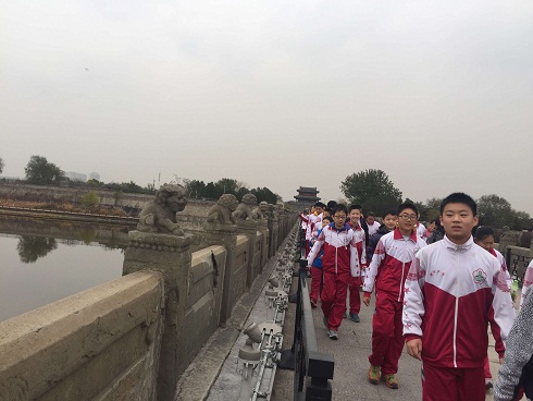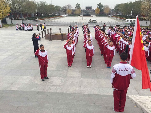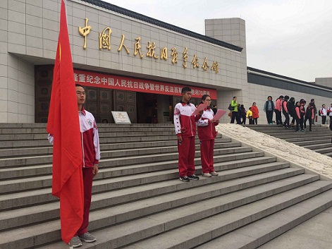 为纪念抗日战争胜利70周年,加强学生的爱国主义教育,11月17日潞河中学团委联合初二年级组织学生参观了抗日战争纪念馆,并在馆前举行了“铭记历史,珍视和平,砥砺前行”——纪念抗日战争胜利70周年主题活动暨建团仪式。首先,同学们参观了抗日战争纪念馆,学生在讲解员的介绍下进行有序的参观学习,直观地感受到反法西斯战争胜利来之不易,并认真完成了老师们布置的学习单,对八年抗战的历史有了更全面的认识。参观后,在纪念馆前举行了“铭记历史,珍视和平,砥砺前行”——纪念抗日战争胜利70周年主题活动暨建团仪式。首先,刘乐坤、王景仁、吉安凡、王若曦、王冰同学带领大家回顾了战争年代潞河学子蔡德辰、周文彬、刘玉林等烈士的感人事迹,激励同学们秉承 “一切为了祖国”校训,延续潞河中学的爱国传统。团委副书记徐甲老师宣布《关于批准初二年级48名同学加入中国共产主义青年团以及在初二年级建立团支部的决定》,班主任老师们亲手为新团员佩戴上意义非凡的团徽,鼓舞同学们奋发向上、不懈努力。钱宇洋同学代表新团员发言,表达了能够带上团徽的自豪感以及继承先烈的精神、顽强拼搏、自强不息、贡献社会的决心。入团积极分子胡可欣呼吁更多同学要主动发展、努力朝共青团组织靠拢,早日成为一名共青团员。在优秀学生代表史松奇的带领下,在老师和同学们的见证下,新团员们在团旗下庄严宣誓,做出承诺。李晨松副校长对全体同学寄予厚望,希望同学们在兴奋于带上闪闪团徽的同时,更要意识到自己社会角色由少年转变为青年,稚嫩的肩膀上应承担起对家庭、社会和国家的责任。她激励孩子们要把握青春,以更加朝气蓬勃的姿态去面对人生新的挑战,字字句句饱含深情,充满对孩子们成长的祝福及深切期望。在抗战馆参观后,全体师生又一同走进卢沟桥遗址,感受古都北京的历史风貌。至此,活动圆满结束。