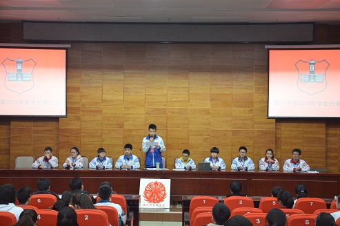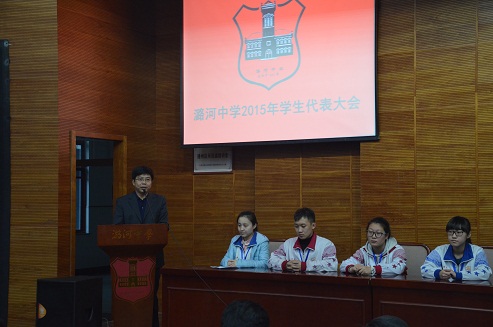 2015年12月6日下午2:00,潞河中学隆重召开2015年学生代表大会。初一、初二、初三、预科、高一、高二年级各班民主推选的学生代表和学生会常委候选人参加了此次大会。徐华校长、党总支副书记孟洪峰老师、谢宏春副校长、李通书主任、刘晓蕾主任、团委徐甲副书记出席会议。在大会开幕式上,第二十七届学生会主席及部长分别作2015年学生会总体及各部工作报告。报告详细地阐述了学生会一年来开展的包括潞河好声音、篮球赛、辩论赛等近80场次的丰富多彩的校内活动,以及图书交易会、松堂、人工耳蜗学校、太阳村等校外志愿服务活动。之后,大会分三个分会场通过激烈的竞选演讲和庄严的投票,选举产生了新一届学生会成员。在闭幕式上,新一届学生会成员与学校领导、学生代表见面并进行了简短而精彩的自我介绍。闭幕会上,徐校长指出:首先,学生代表大会是潞河全体学生的一件政治上的大事,无论是历史上的学生自治会还是如今的学生会,同学们都秉承潞河的传统:主动发展,追求卓越。第二,过去一年,第二十七届学生会开展了很多卓有成效、喜闻乐见的活动,丰富了同学们的生活。第三,徐校长期望孩子们经过潞河文化的滋养,未来能够成为带着潞河印记的有着更高精神追求的有志青年。