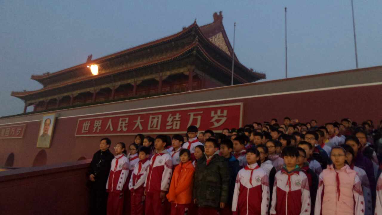 2015年4月10日,我校应市教委、区教委统一安排,组织全体初一年级师生到天安门观礼台,观看升旗仪式。
