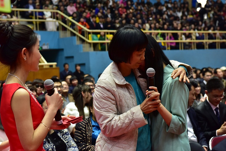 典礼现场,同学们收到了父母、老师的礼物和信件,当拿到家长、老师为自己精心准备的礼物和信件时,很多同学感动落泪。为了给更多家长和同学表达自己感情的机会,主持人现场采访了几位同学和家长。孩子们的感恩、家长的关爱,让整个礼堂充满了爱与温馨,将成人礼推向了高潮。在这个重要的时刻,新疆同学不仅收到了来自班主任的礼物,还有相隔千里的来自父母的祝福。成施晓的妈妈,和大家分享了她为孩子准备的特殊的成人礼物——孩子的成长视频,视频中一张张照片,一句句话语都流露出父母对孩子炽热而深沉的爱,作为家长代表的她还表达了父母对孩子们的深切期望,希望孩子们能学会坚守、感恩、和担当。教师代表马剑涛老师用形象、深刻、幽默的文字展示了高三年级所有班主任老师们的风采,引起同学们的共鸣,同学们用自己的掌声和喝彩声表达了对老师们的感恩之情。成茗宇同学代表全体学子发言,发自肺腑地表达了自己对父母、亲人、老师、朋友的感恩之情,对责任、梦想的理解以及不负众望、勇往直前的坚定信念。在团委副书记徐甲老师带领下,全体高三学生面对国旗庄严宣誓,铮铮誓言响彻整个会场。活动最后,谢宏春副校长的寄语中表达了对同学们成年的祝福,同时站在更高的角度对同学们提出新的要求。典礼在激昂的乐曲声中结束,孩子们的人生也翻开了崭新的一页。