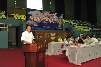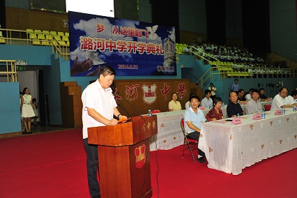 区委副书记李玉君代表区委、区人大、区政府、区政协向全体同学致以新学年的美好祝愿,向辛勤工作的教师致以崇高的敬意。他说:“潞河中学历史悠久,传统优良,底蕴深厚。近几年,潞河中学的建设也取得了新的丰硕成果,北京市百年学校,中国可持续发展教育项目国家实验学校,全国基础教育课程教学改革实验项目学校,全国示范文学校园等等一系列的荣誉。”他希望在接下来的一年中,潞河中学的干部、教师,继续坚持业已形成的办学思想,发扬潞河的优良传统,在各自的岗位上辛勤耕耘、开拓进取、不断创新,按照十八届三中全会的新要求进一步扎实推进学校事业发展。