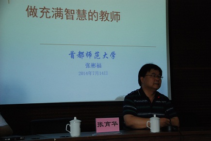 短短两天的时间,首都师范大学教育学院张彬福教授、音乐学院李刚副教授;中国传媒大学播音与主持艺术学院副院长李洪岩副教授、新闻传播学部郑志亮老师,艺术学部路盛章教授5位教师为参会师生们做了5场特别精彩的报告。从《中小学教学法》、《红楼梦的音乐与人生》、《科学用声与语言表达》,一直到《课堂教学的PPT创意与制作》、《艺术灵性与人生》,每一名参会教师与学生不仅听得如痴如醉,也在思想上为接下来的教学工作做出了准备。