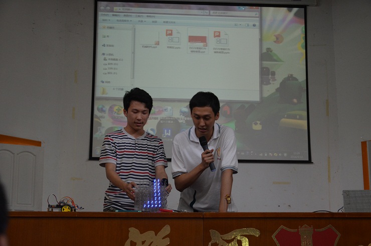2014年6月10日,特斯拉科技社在我校解放楼举行了一年一度的社团展示活动。电子蜡烛、自行车自动行车辅助装置、特斯拉线圈、马克斯发声器、光立方、电子显示屏、单片机机器人、斯特林发动机等一系列学生精心制作的科技产品吸引了众多师生的关注。随着同学们一件件展品的展出,师生们对特斯拉的研究更加钦佩不已。一年来特斯拉科技社的同学们每天都在他们的社团活动教室进行科学的研究与实验,为了他们心中的科技梦想努力付诸实践。我们相信他们一定能够取得更大的成功。