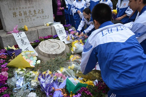 随后各班班长和团支部书记在团委副书记刘晓蕾老师的带领下,来到了位于德辰山上的陈昌祐老校长墓前刘老师向同学们介绍了先生生前与革命先烈们一起为潞河、为国家、为民族,独立富强而顽强拼搏的感人事迹。同学们也为老校长献上鲜花,深深三鞠躬,悼念在潞河历史上做出突出贡献的前辈,寄予了同学们的感激与崇敬之情。