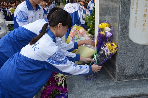 2014年4月1日,我校组织全体初一、预科及高一年级同学来到学校革命烈士纪念碑前为烈士们扫墓。