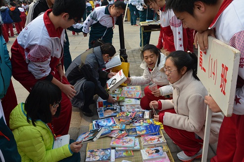 3月20、21日,潞河中学学生会组织了我校2013年的图书交易会,同学们带着文学名著、科普典籍、杂志期刊、教辅工具书等各种门类的图书在校园文彬路上进行交易。热闹的甬路上,各班的摊位吸引了全校师生的目光,校长、老师、学生尽情陶醉在淘书与交流的快乐中。