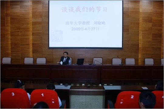 下午清华大学教授刘晓峰为初一、初二年级学生做《谈谈我们的节日》讲座。刘教授从哲学和文化的角度,阐述了中国重阳节、七夕节、端午节等节日的由来,并鼓励同学们努力建设我们自己的文化,不断丰富中华传统节日的内涵。