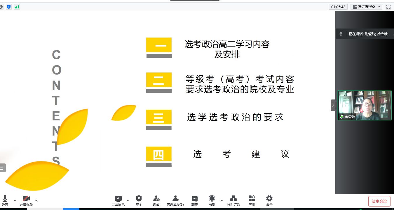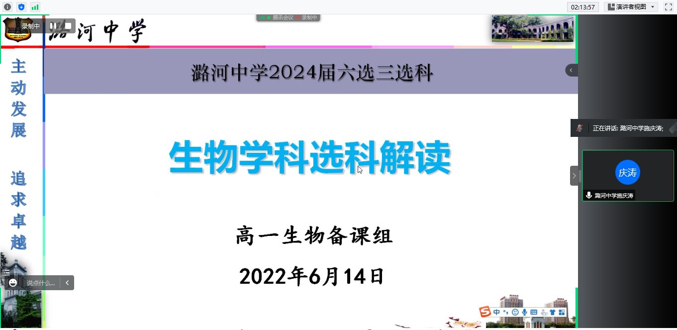 六月十五日,我们高一年级在线上召开了选科指导大会。尽管同学和老师们没有办法在线下见面,但是各科老师都在线上直播中细致全面地为我们讲解了每个选考科目的学科特点、难点,适合怎样的同学学习,以及与大学专业选择的挂钩和对职业的规划。老师们辛苦用心的讲解让我们对每个学科的了解更加深入,同时更好地评估了自身的学习状况和学科优势,为我们的选科指明了方向。愿我们“爱我所爱,行我所行,听从我心,无问西东”,以最蓬勃的姿态奔向下一个站点! 高一14班熊嘉玥