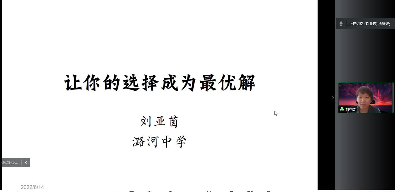 成长教研室刘亚茵老师以《把你的选择变成最优解》为题,强调在选科的过程当中,要想把自己的选择变为最优解就需要明确限制条件,提升实现的可能性。