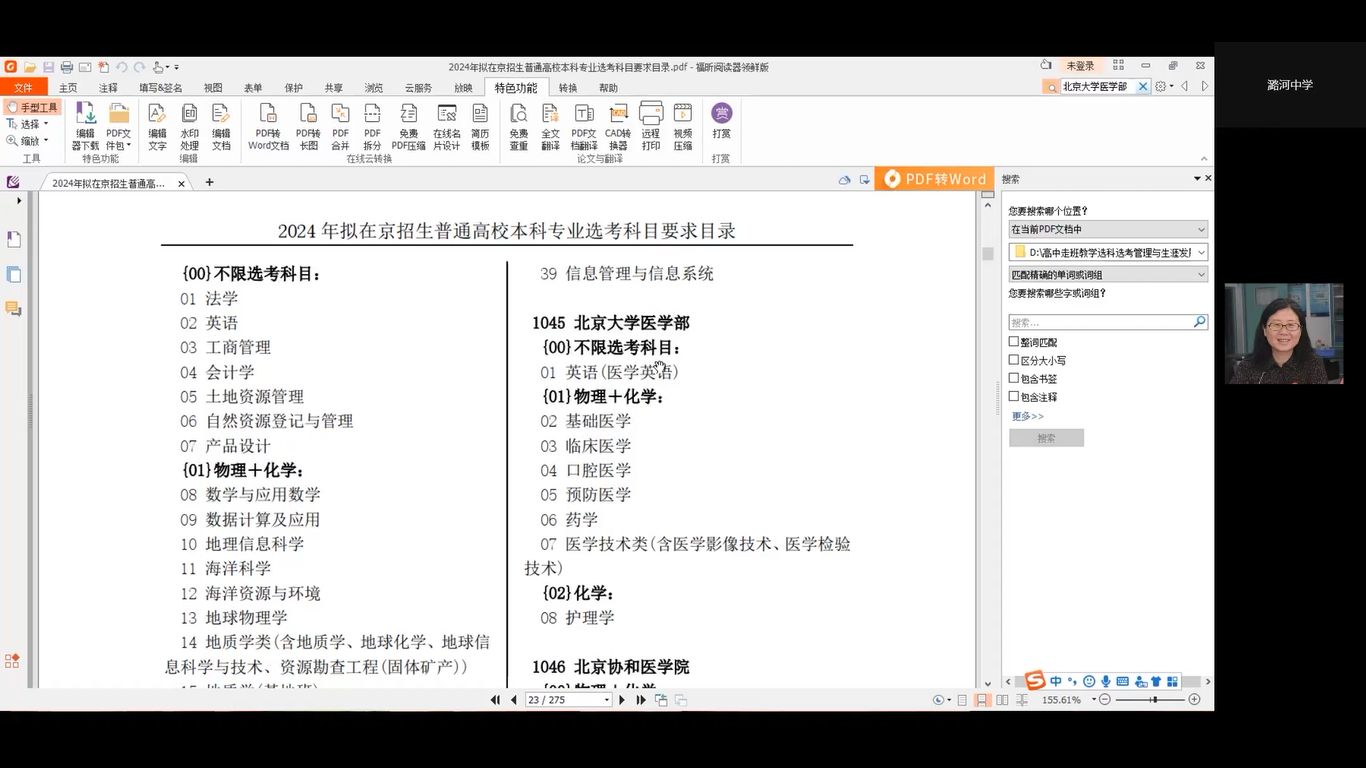 6月14日下午,潞河中学教学处和高一年级组召开高一年级“六选三”学科规划指导学生大会,邀请物理教研室主任张晓、化学备课组长夏添、生物备课组长施庆涛、政治备课组长荆爱玲、历史备课组长李岩、地理教研室主任刘珍、成长教研室主任刘亚茵、教学处主任毛燕宁8位教师为学生们进行选科指导。