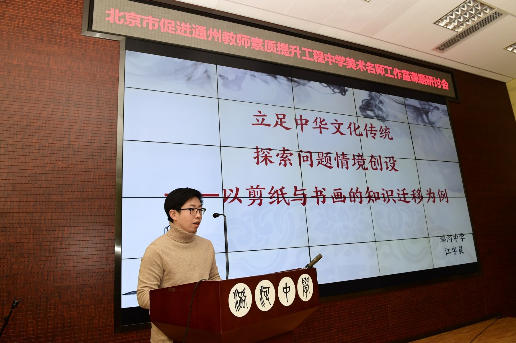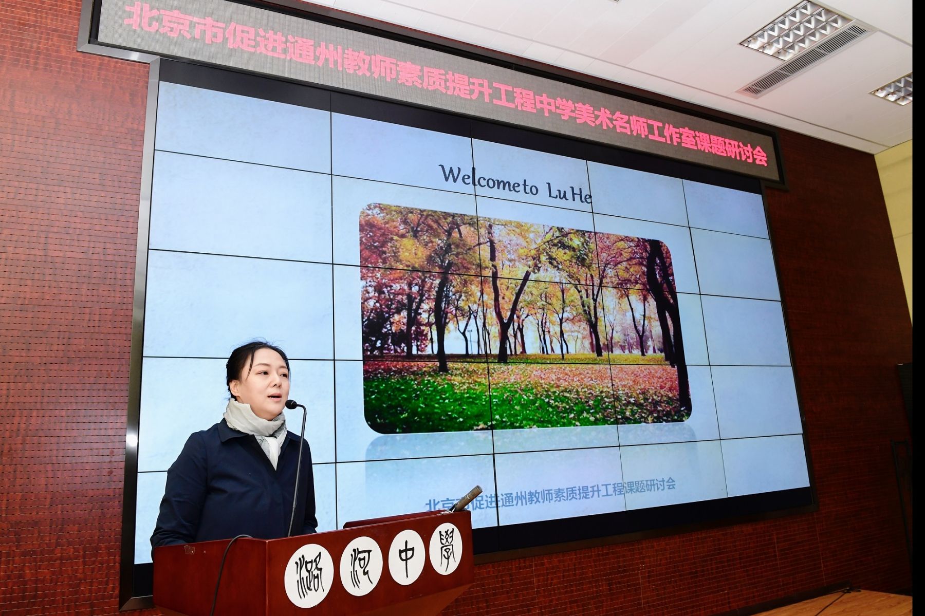 会上,吴琳老师汇报了她在北京市促进通州教师素质提升工程中学美术名师工作室三年来的收获,重点与大家分享了她主持的课题《高中美术<中国书画>模块问题情境创设策略研究》的相关成果。周东岭老师、王超老师、王晓如老师和江宇晨老师作为课题团队成员代表向与会领导、专家及老师们分别以微课、说课、经验分享、特色展示等形式做了精彩的汇报,展现了潞河教师综合的教科研能力和专业水平,得到了专家和老师们的一致好评。专家们一致评价:“潞河中学作为一所百年名校,在北京市乃至全国久享盛誉,而今天的课题研讨会让大家看到了比心目中更高、更好的潞河美术教育——高水平的学术引领、强大的教师团队、多种教研形式的综合展示、丰富的成果形式。这都让市区专家和众多区县的美术老师期待着潞河能将成果辐射到更广阔的舞台中,发挥引领作用。”