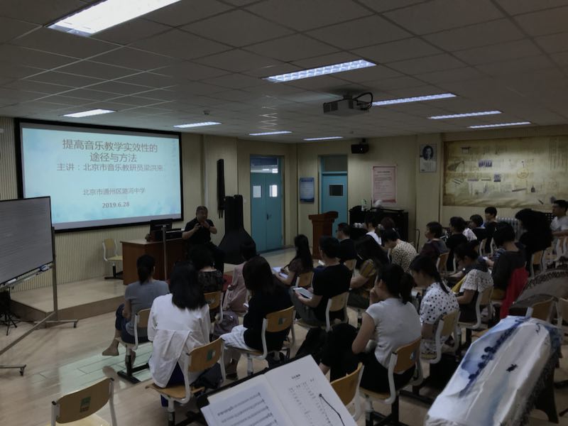 6月28日下午两点,在我校举办通州区中学音乐学科“提高音乐教学实效性的途径和方法”主题培训。主讲人为北京市音乐教研员梁洪来老师,与会人员为通州区的中学音乐教研员黄侃夫老师及各中学音乐教师。