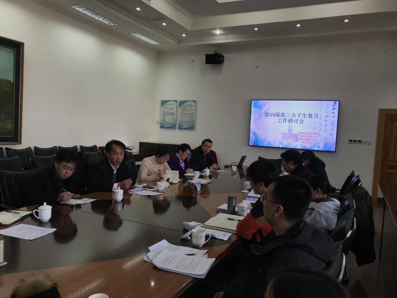 为进一步提升我校高三尖子生培养工作的有效性和针对性,2018年12月11日,区教委副主任王秀东同志带队,中教科孙翠松、白文刚和郑铉三位同志以及研修区中心唐桂春、马耀国两位副院长第二次到我校进行督导和研讨工作。会议主要分两部分内容进行。