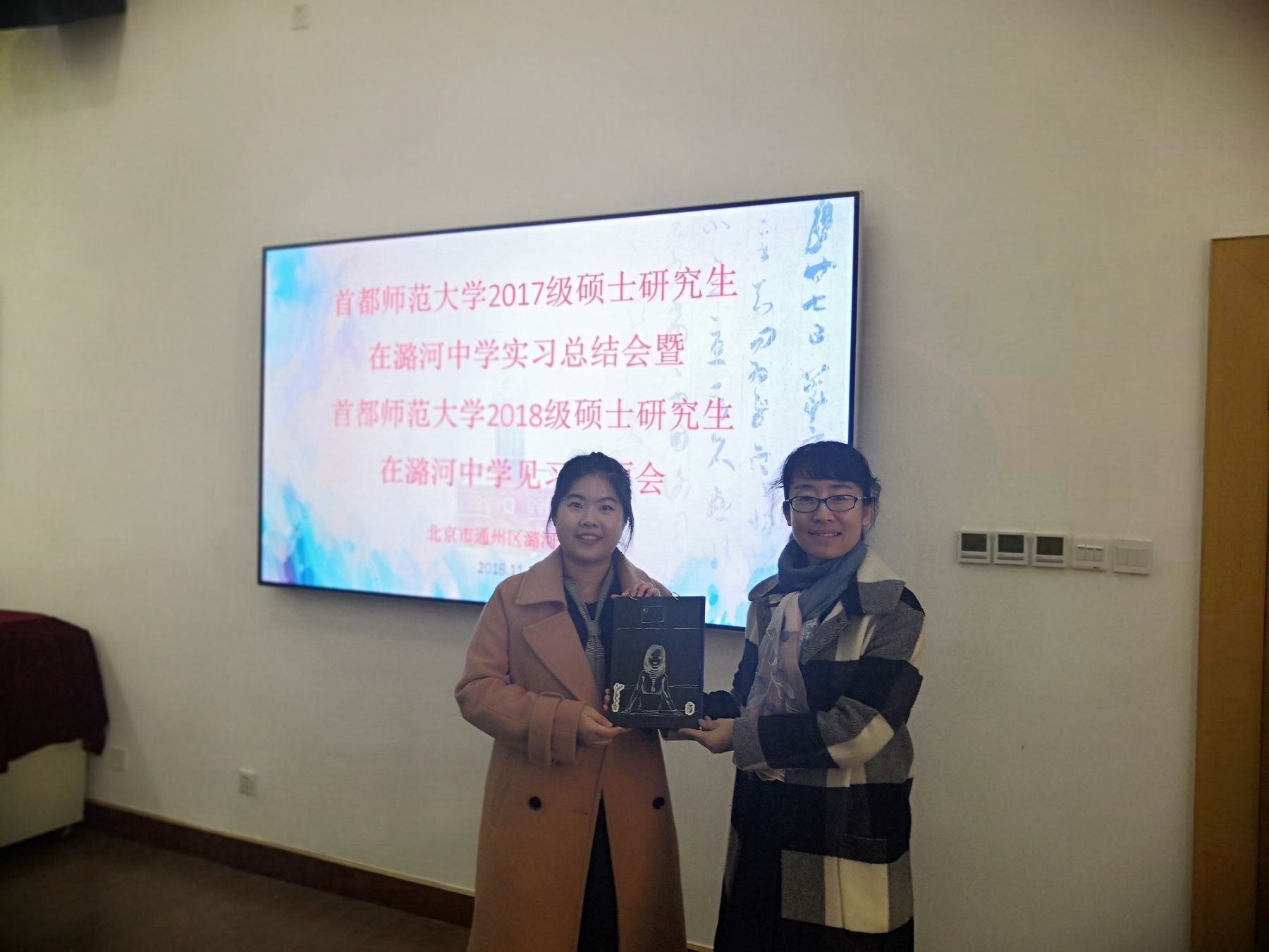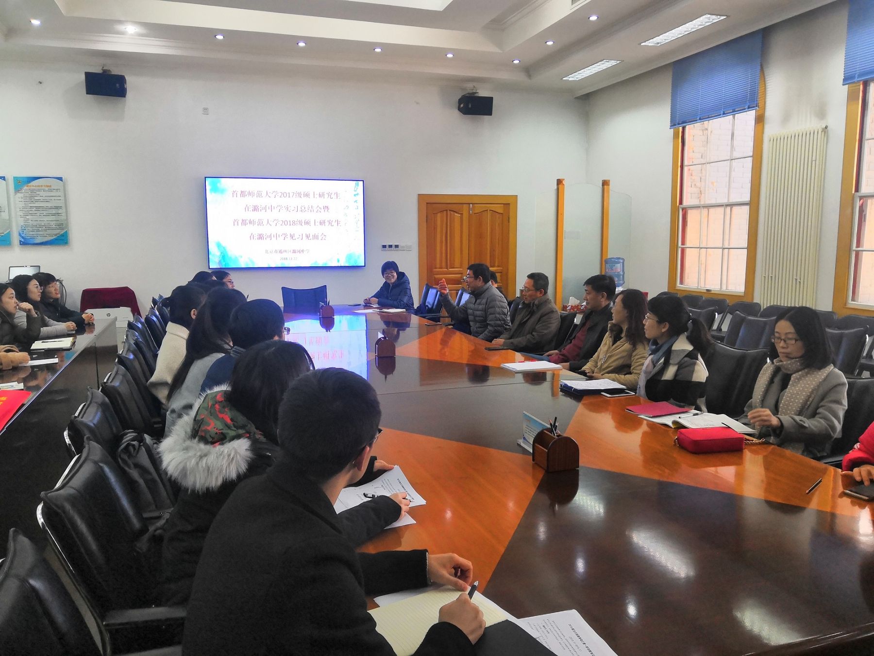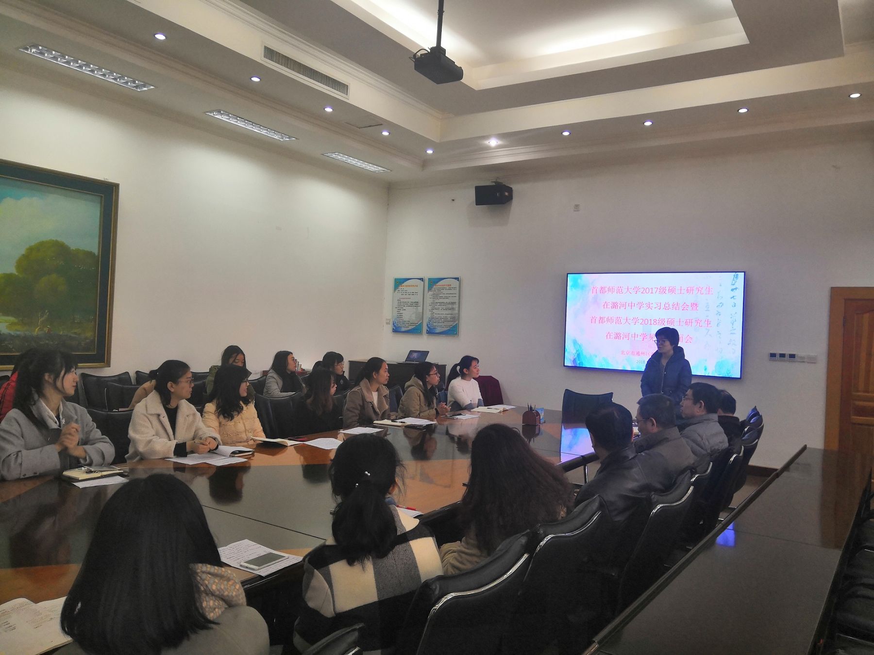 首都师范大学2017级硕士研究生于2017年11月至2018年1月在我校分散见习,2018年4月至6月在我校集中见习,2018年9月至11月在我校集中实习。我校黄耀新,王友珍,郭淑慧,刘进,郭子亮,马久林,张颖,叶少山,杨连翠老师承担学术导师工作,王珍珍,李聪聪,刘进,金晓洲,邵红梅,张颖,陈晓丽,曹晓鸣老师承担班主任导师工作。