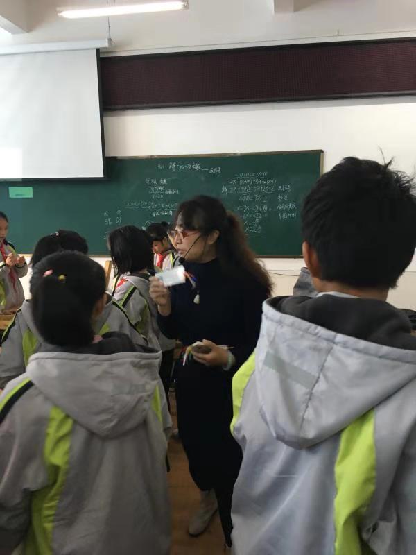 孙宝英老师讲授初中数学七上 3.3 解一元一次方程(二)—去括号与去分母(93 至 95 页)(同课异构),将我校初中的小组合作式教学带到了那里,从学生存在的问题出发,以问题为引领,引导学生逐步提出问题、发现问题最后解决问题。结合这节课以及个人平时的教学,做了《在做中学——感受数学的应用性》的专题讲座,进一步阐述了在课堂教学中是如何注重培养学生的思维能力和应用意识。