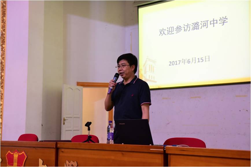 首先,徐华校长在解放楼向客人们致欢迎辞,然后利用一个小时的时间向客人们介绍了潞河中学的发展历程,教学理念、课程建设、学生活动开展情况、北京市副中心建设过程中潞河中学的使命与担当等。其中重点介绍了潞河中学的发展历程,课程体系、学生社团的组织与开展以及高三的工作重点等。