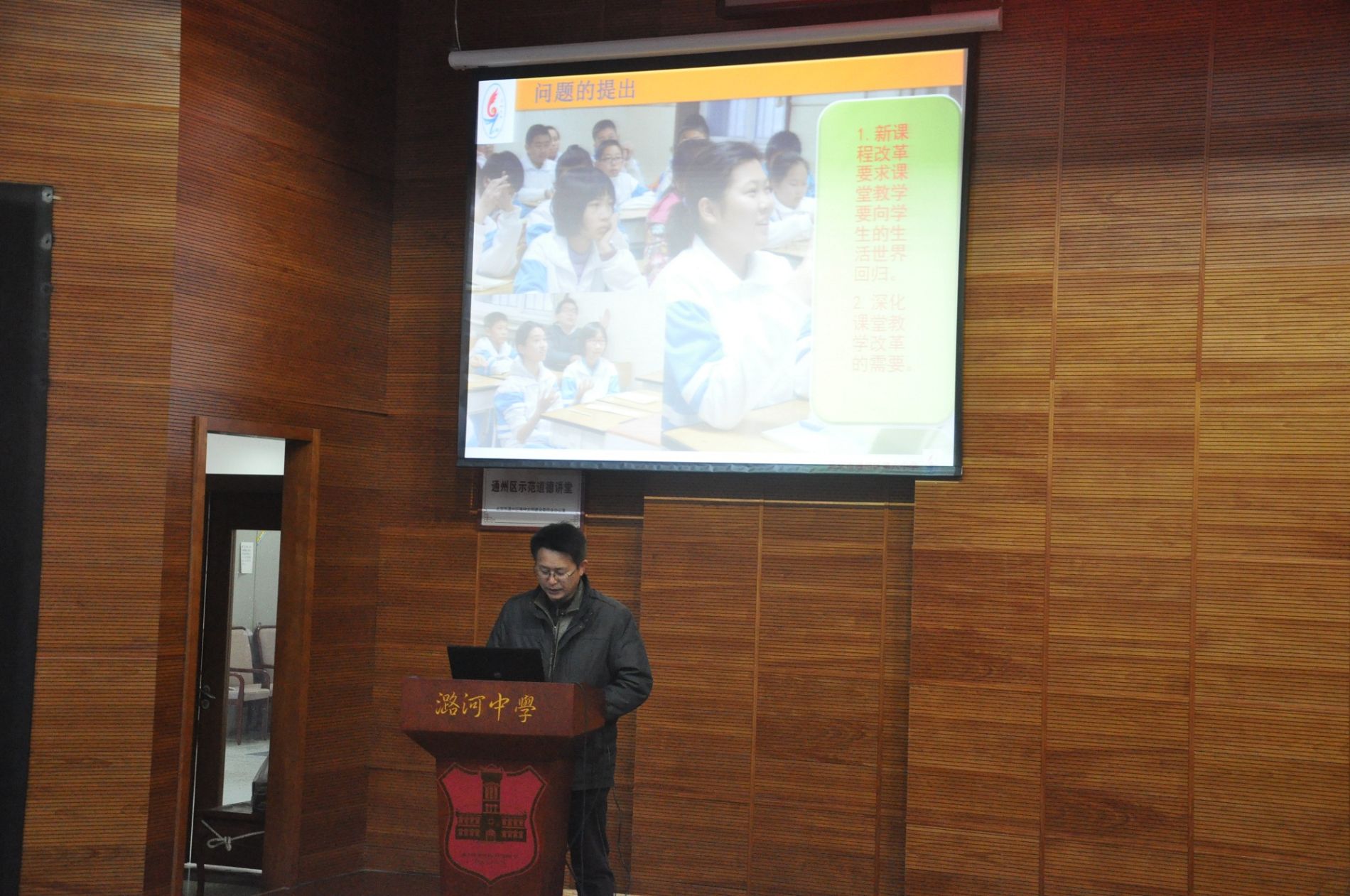 12月27日(周二)在我校举行了“通州区中学课堂教学改革实验”项目结题的第三次系列活动。本次活动由通州区教委中教科主办,参加活动的有:潞河中学校长徐华、通州区教委副主任王秀东、中教科科长张晓航等以及各项目校的项目负责人、教学干部共计60余人。