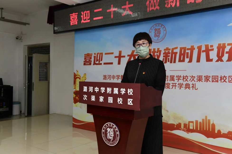 商学芳校长对我校加入潞河中学教育集团表示热烈的祝贺,对师生们的回归及一年级新同学的加入表示诚挚的欢迎。在二十大来临之际,对我校师生提出期望:希望同学们向心怀国家大义的黄昆、侯仁之等为代表的潞河学子学习,学学长事迹,讲学长故事,传承学长精神。把“一切为了祖国”的校训,落实到学习生活的细节当中,成为德智体美劳全面发展的潞河好少年。希望教师们精诚团结,扎实工作,努力提升队伍品质,创造优异成绩,为党的二十大献礼。
