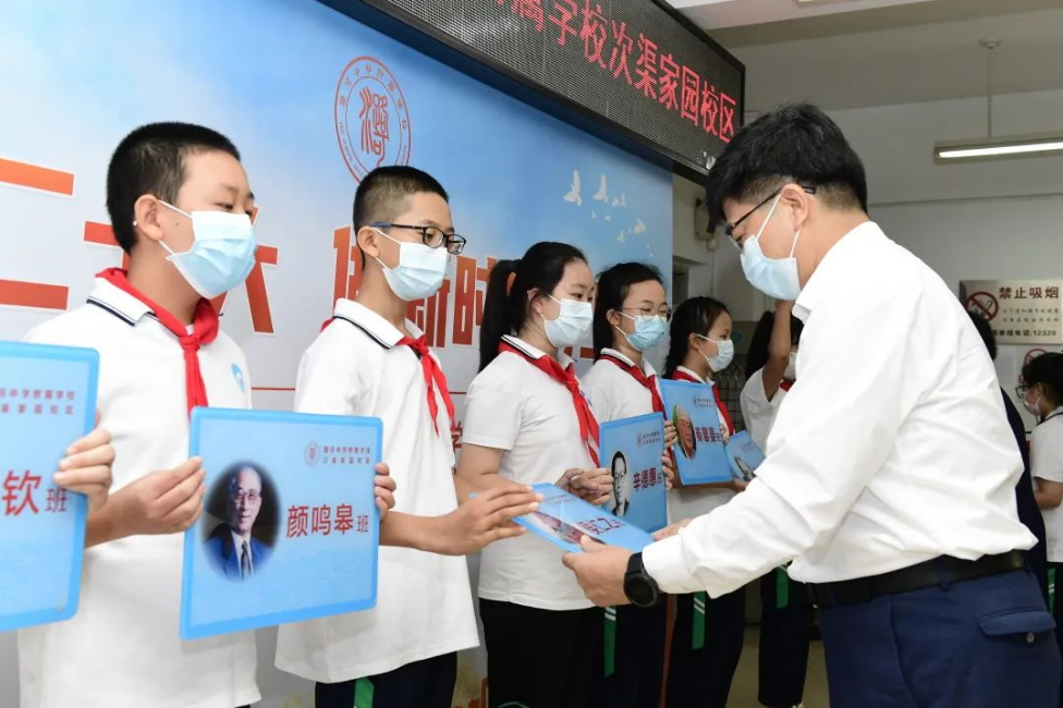 百年潞河钟灵毓秀。以黄昆、侯仁之等为代表的潞河学子,心怀国家大义,用不懈奋斗书写了壮丽的人生华章,他们是潞河学子永远的榜样。为引领学生,以学长为榜样,传承学长精神,徐华校长及孙会芹校长为六年级八个班同学举行了隆重的授牌仪式。