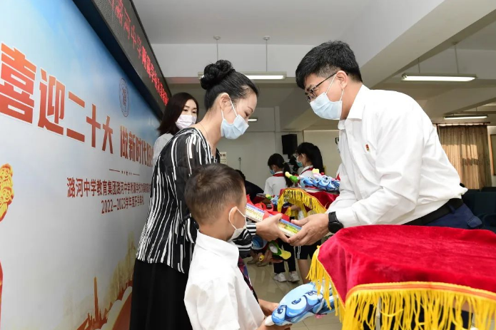 徐华校长、孙会芹校长为一年级新生送上可爱的潞河娃及精美的图书,愿孩子们好读书、读好书,成为一个有学识、有智慧的人。