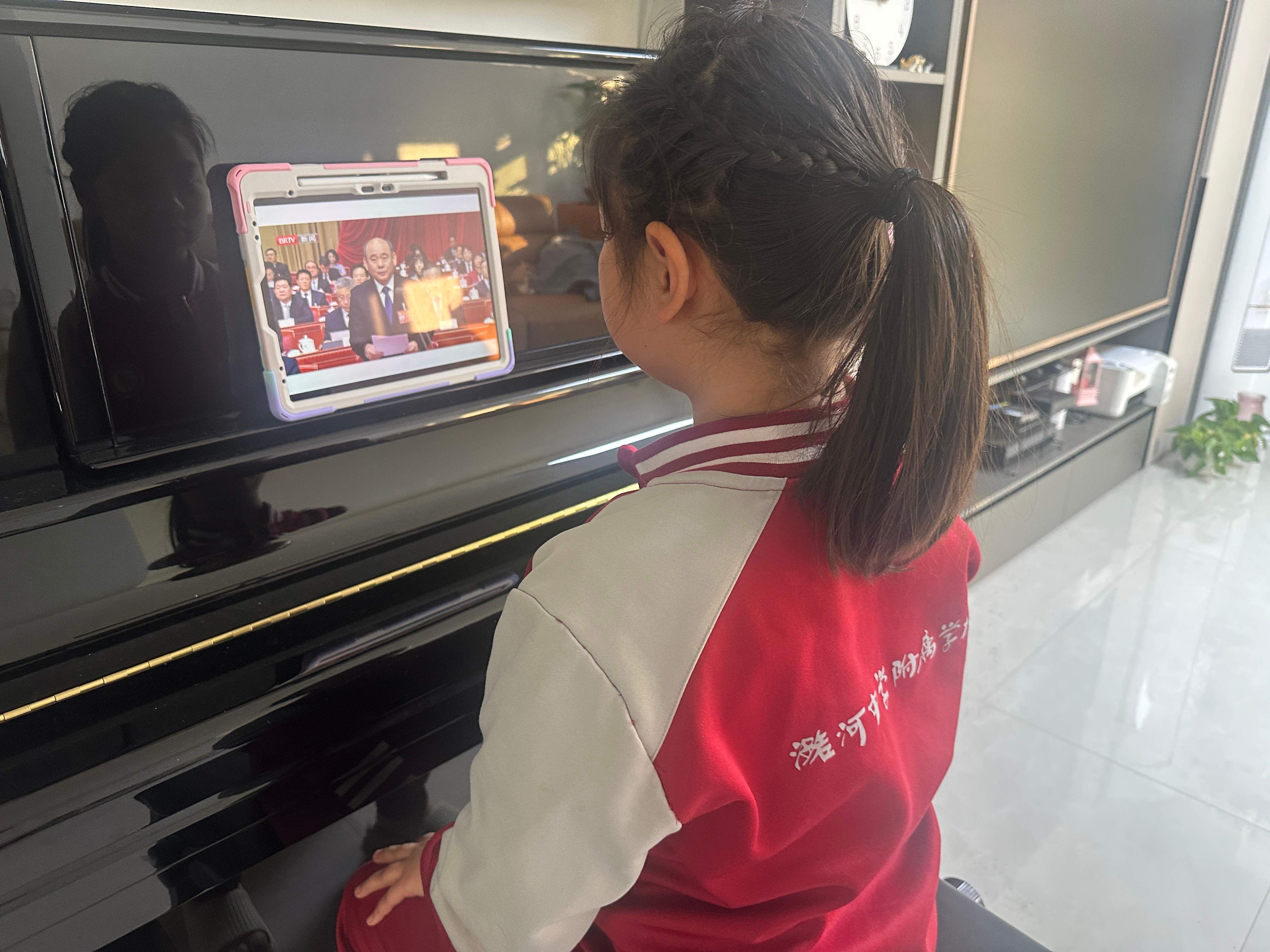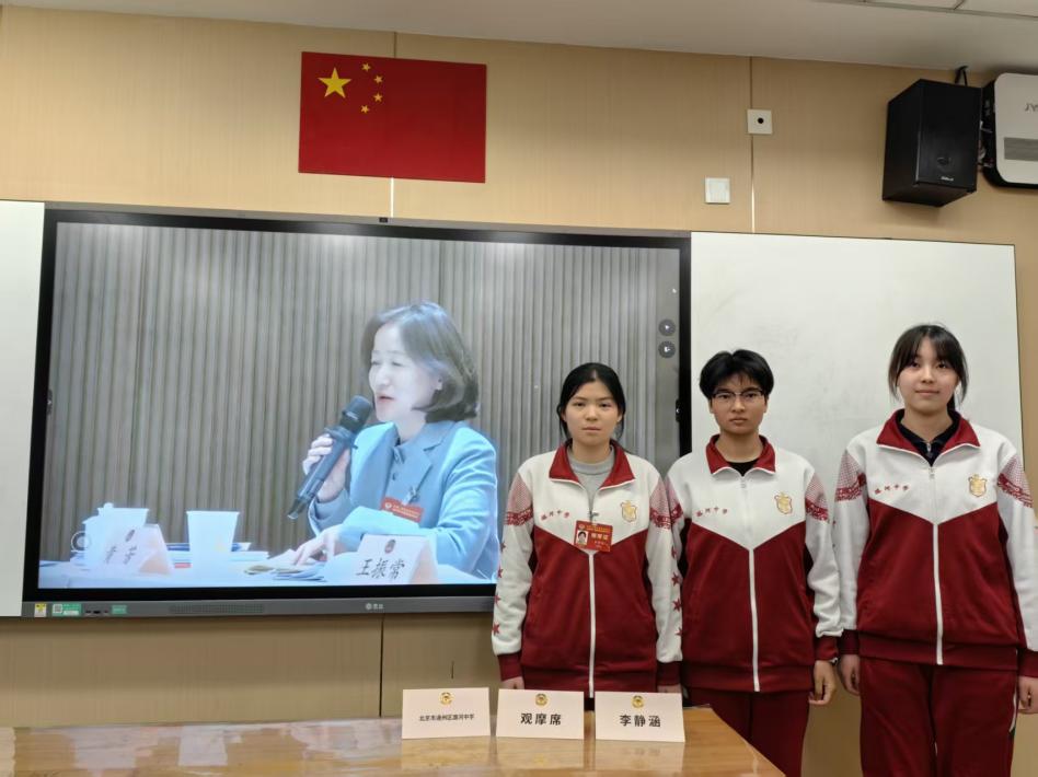 在北京两会期间,高二(11)班李静涵、刘睿祎、木克热木三位同学和指导教师田娜、张洁线上观摩了北京市政协第十四届委员会第四次会议开幕会、大会发言、委员分组讨论、闭幕会和北京市第十六届人民代表大会第四次会议开幕会等。同时,潞河中学教育集团潞河中学附属学校、通州第二中学等学校的同学们也对开幕会进行了线上观摩,师生齐聚云端,共悟民主真谛、共话青春担当,协商民主的种子在青少年心中生根发芽。