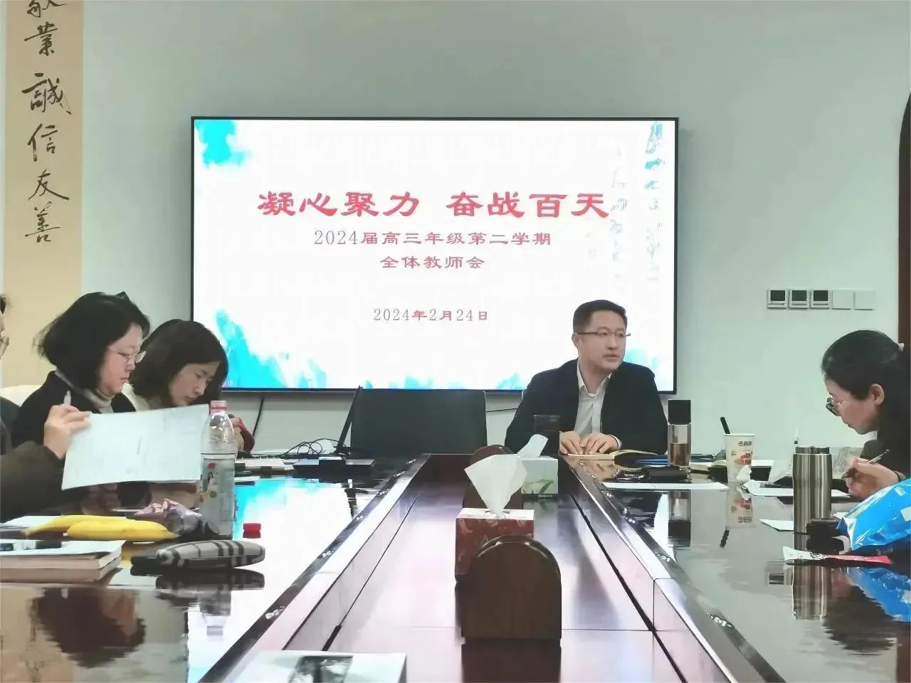 为明确奋斗目标,凝聚团队力量,2024年2月24日下午,潞河中学高三年级召开了全体教师会。郝臣校长、谢宏春副校长、毛燕宁主任、梁莹莹副主任和高三全体教师参加了此次会议,蒋真铮老师负责主持。