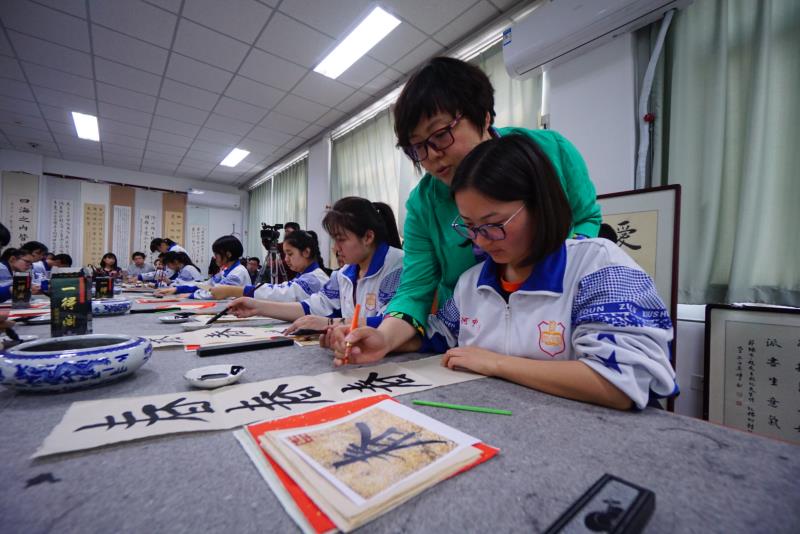 2018年4月20日上午,市区专家及书法教师近40余人走进我校吴琳老师书法工作室,共同研讨高中书法课程教学。