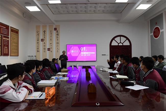 胡伟教授介绍了2021年清华大学招生情况,尤其是对清华大学2021年强基计划录取专业和录取情况作了详细介绍。特别让学生们欣喜和意外的是,胡教授通过对近年来清华录取的学生高中在校学习情况的调研,为潞河学生做了一场非常精彩的高三复习经验介绍,勉励学生们向清华学长们学习,树立远大人生目标和梦想,拼意志,树理想,将自己的人生规划和祖国发展结合起来,并预祝学生们通过半年多的不懈努力,取得高考好成绩。