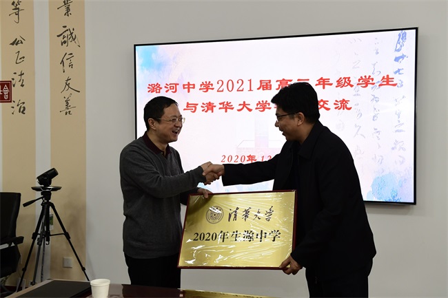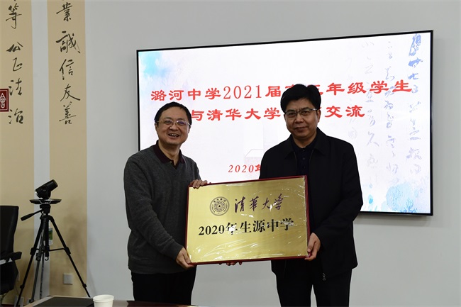 12月中旬,清华大学招生办公室胡伟教授等来到潞河中学,代表清华大学向潞河中学授予“2020年生源中学称号”。并与高三年级前十名尖子生座谈,了解学生们的目前复习备考情况。
