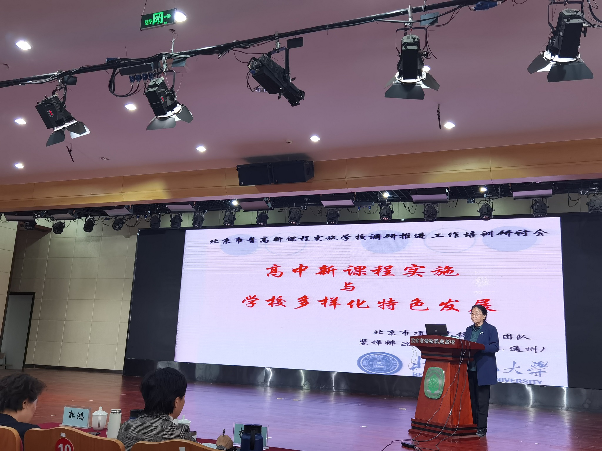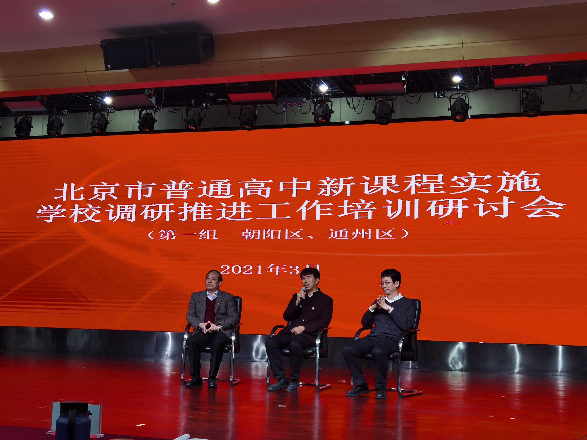 研讨会由朝阳区教委中教科种凌晨科长、通州区教委中教科张旭东科长主持,围绕如何构建为学生提供多样化、可选择的课程体系;学校学科课程建设规划的制定,课堂教学与学习方式改革;选课走班、生涯规划、学生发展指导及评价的实施三个主题进行培训研讨。