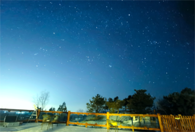 这次活动我们既赏了雪景,又欣赏了大量转瞬即逝的流星;既通过望远镜寻找梅西耶天体,锻炼了望远镜组装观测的综合能力,又在艰苦严寒的环境中磨练了意志。作为天文社社员,我亲身体会到两位社长在零下十几度的寒风中调试相机,拍摄银河、深空天体,一直熬到最后,以拍摄日出的延时摄影作为收官作品,他们的努力实在令人佩服!(高一八班:郭昊天)
