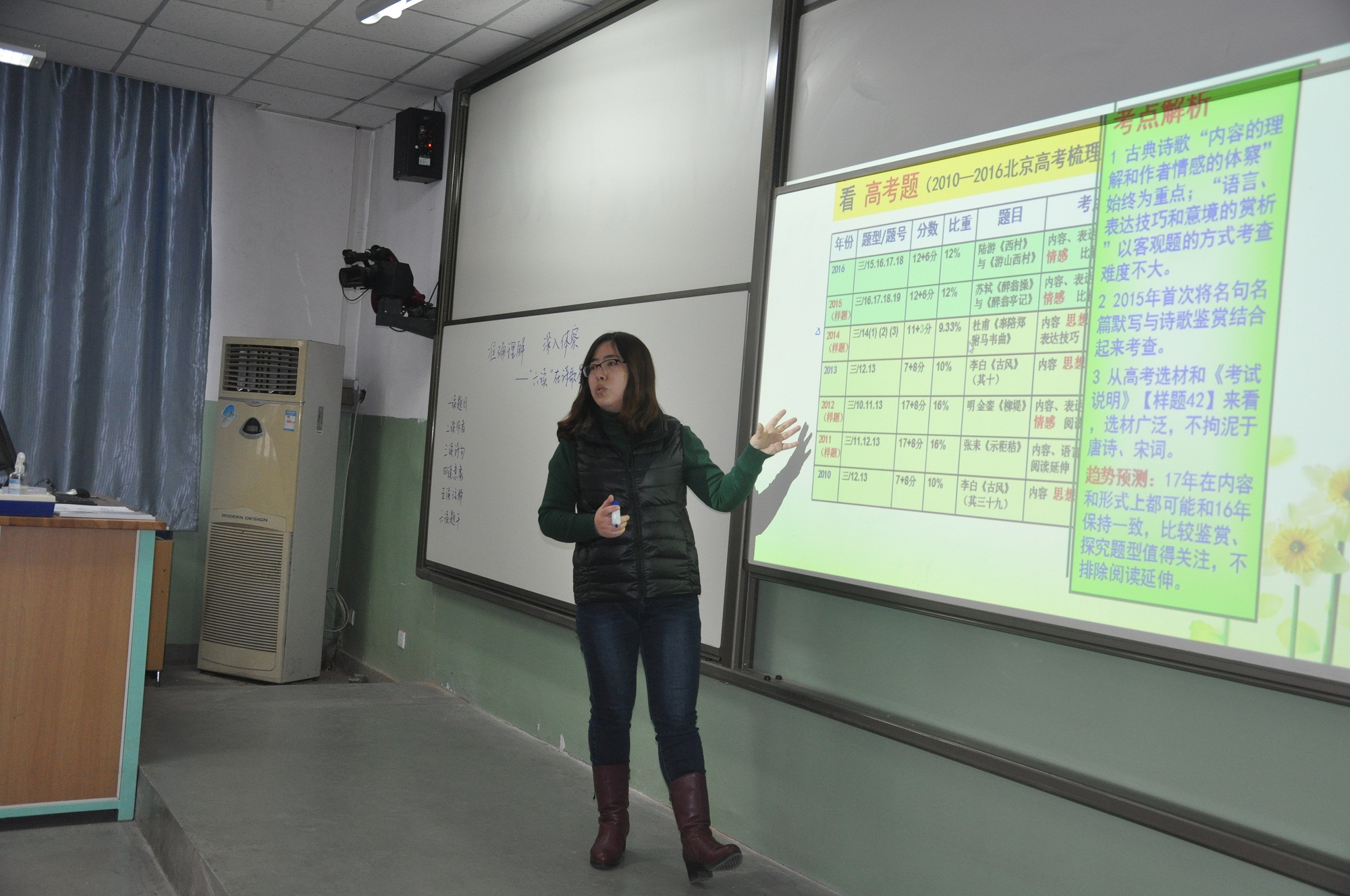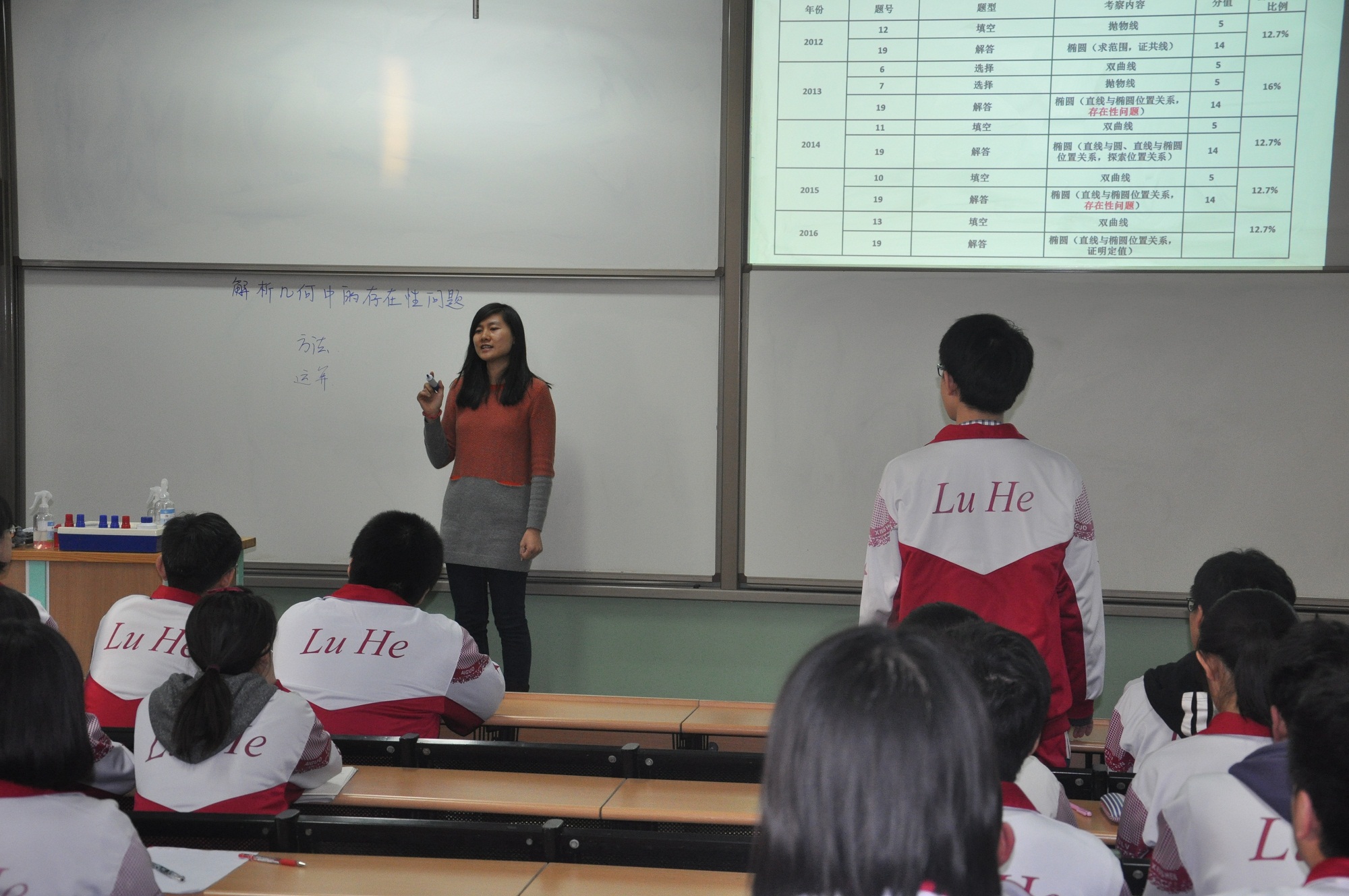 为了进一步提高潞河中学高三学科复习的针对性和有效性,在备课组和语文、数学教研室的共同指导和努力下,2017年2月22日和23日下午第八节课,由语文教研室邵红梅老师和数学教研组刘进老师分别上了题为《准确理解 深入体察——“六读”在诗歌鉴赏中的综合应用》和《解析几何中的存在性问题》的两节高三专题复习示范课。全体高三教师和全区语文、数学老师参与了听课和评课活动。