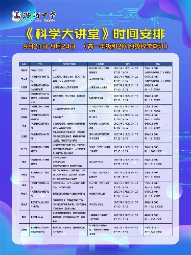 《科学大讲堂》突出科学思想的启迪和科学方法的培养,激发学生爱科学、学科学、用科学、立志科学的兴趣。这是一次科学精神的洗礼和科技之旅的序曲,它将为潞河学子点亮科技之光、引航创新之路!