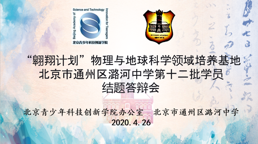 2020年4月26日下午,北京市基础教育阶段创新人才培养项目“翱翔计划”物理与地球科学领域翱翔培养基地北京市通州区潞河中学第十二批翱翔学员结题答辩会顺利举行。