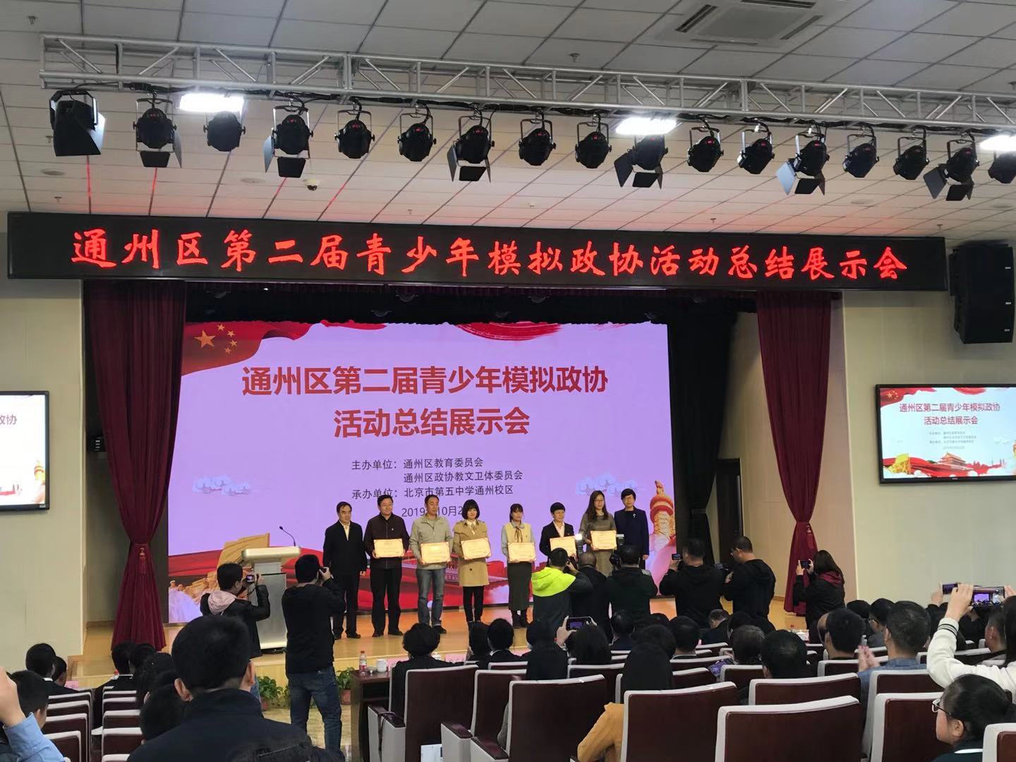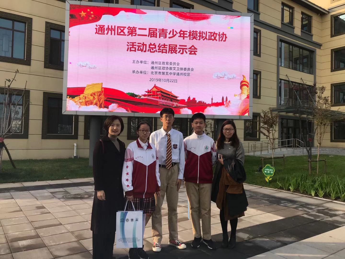 通州区第二届青少年模拟政协活动总结展示会于2019年10月22日在北京五中通州分校举行。我校谢宏春副校长、李丽副主任、蒋真铮老师、崔安迪老师及模拟政协的学生代表到北京五中通州分校参会。