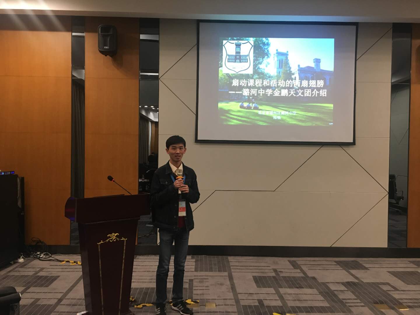 本次CNAO举办期间,同期举办了2019年全国天文教师研讨活动,来自全国各地的天文教师们齐聚一堂,共同交流、研讨各自的天文活动举办心得,我校陆畅老师进行了《煽动课程与活动的两扇翅膀——潞河中学金鹏天文团介绍》的分享汇报,得到了与会老师们的肯定。