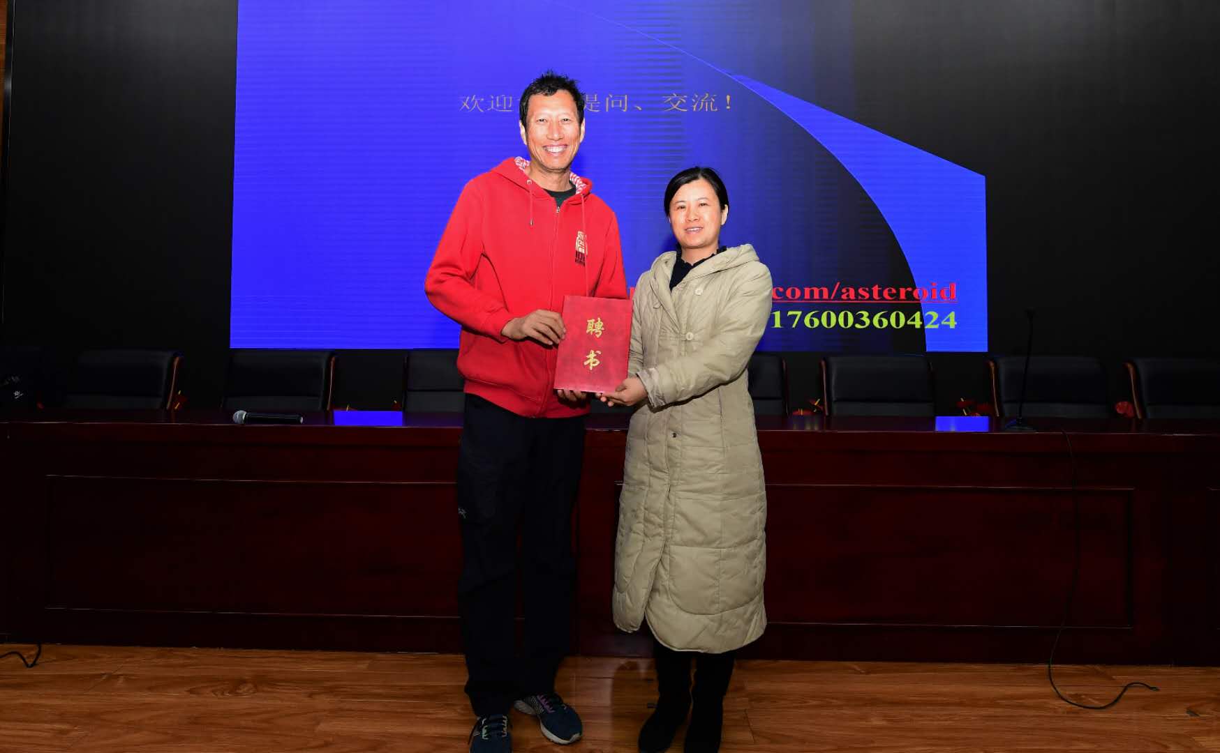 最后学校聘请朱进馆长为我校科技校外指导教师,教学处李丽副主任代表学校为朱馆长颁发聘书。