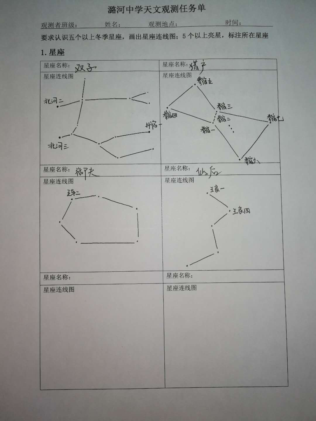 在观测流星雨的同时,东城科技馆的王萌老师利用指星笔带领学生认识天空中的亮星,并渗透东西方星座、星宿的相关知识,同学们将这些信息整理记录在任务单中,以便进行后续巩固。