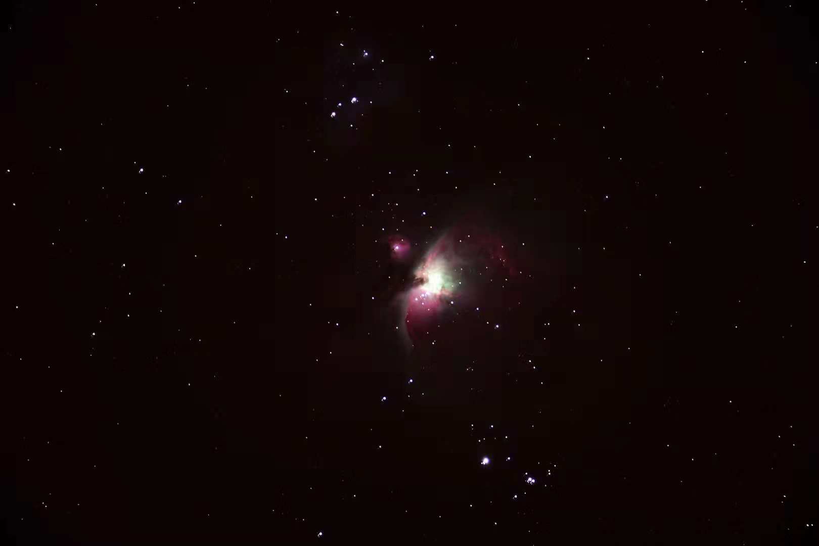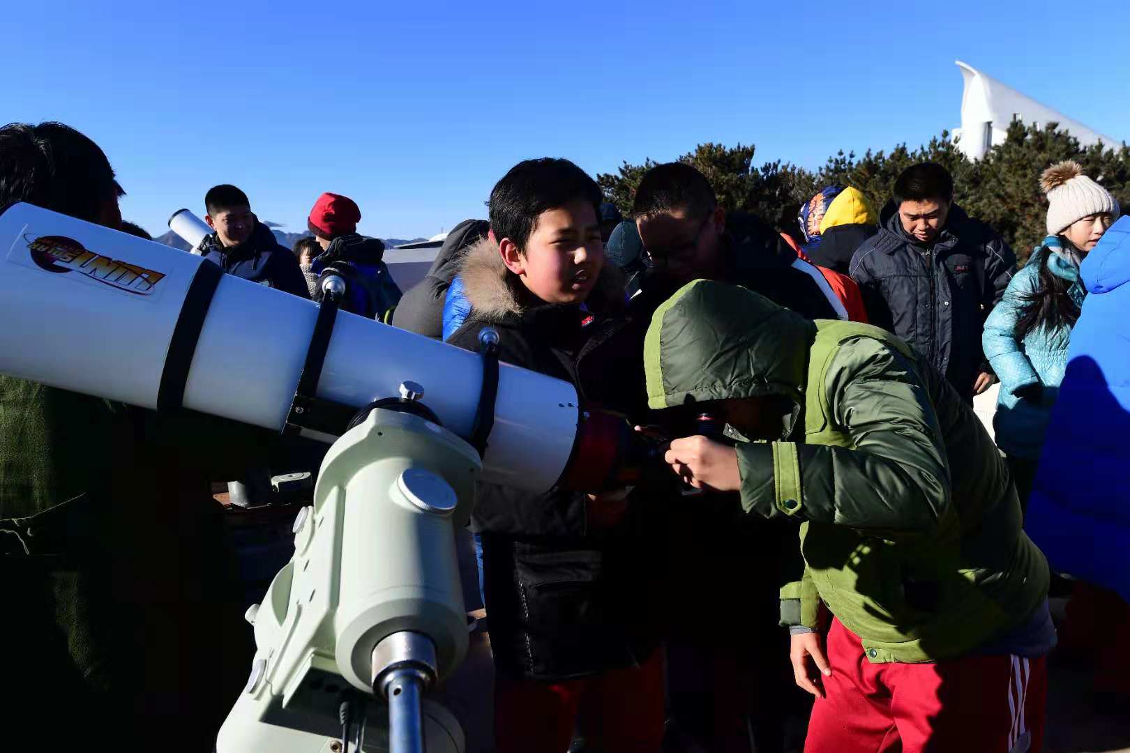 讲座结束后,师生们在戴明老师及天文台工作人员带领下进行户外观测实践:识别天空中的亮星并进行精确定位;认识冬季的基本星座;利用双筒望远镜、折射望远镜观测昴星团等深空天体;架设单反相机进行星空摄影……在零下二十度的低温下,星空格外晴朗,群星密布苍穹,超低温并没有削减同学们的观测热情,尽管手机拿出来就被冻关机,全身贴满热宝依旧被冻透,为拍星云手脚被冻麻木,但是同学们依旧兴致勃勃。