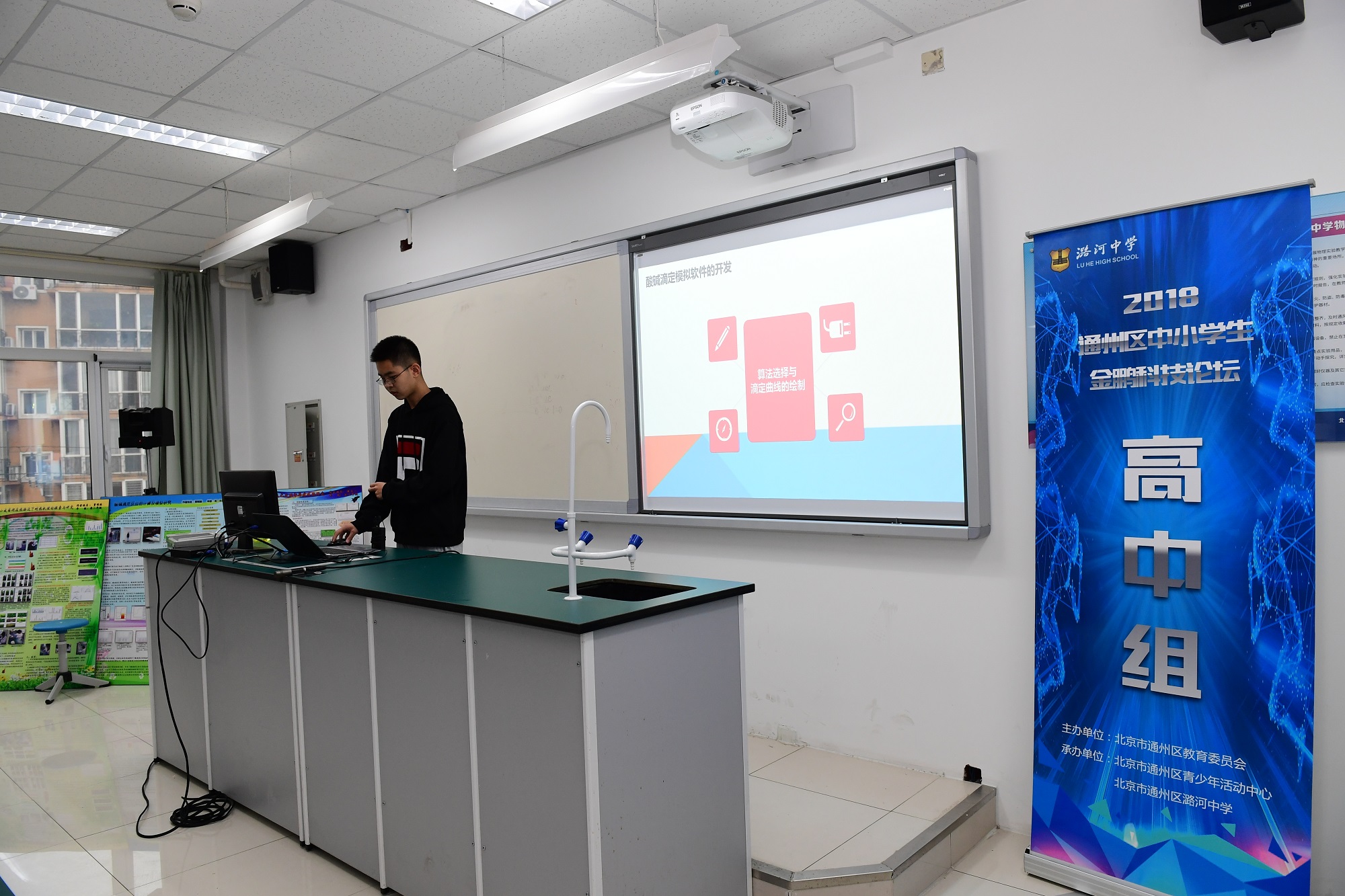 开幕式结束后,参赛学员到各答辩室进行答辩。近200名学生带着90余个研究项目,经过一天的专家评审和学生答辩,2018年通州区中小学生金鹏科技论坛暨潞河中学科技节开幕式圆满结束。