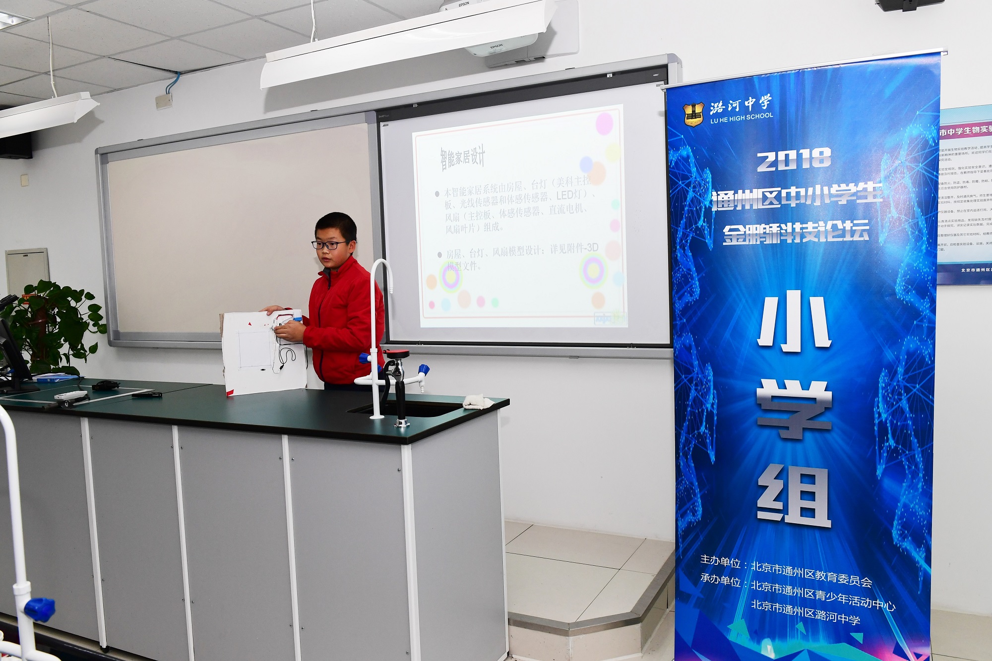 2018年12月2日,由通州区教委主办,通州区青少年活动中心和通州区潞河中学共同承办的“2018年通州区中小学生金鹏科技论坛暨潞河中学科技节开幕式”在潞河中学隆重举行。北京校外教育协会会长、北京市天文馆副馆长景海荣博士、北京清华大学教授 袁涛老师、北京自然博物馆杨景成博士、北京师范大学副教授刘英健老师、宣武青少年科技馆高级教师 张俊菊老师、大兴少年宫科技教育高级教师王向宗老师六位专家出席本次活动并担任此次论坛活动评委。通州区教委副主任袁静华、通州区青少年活动中心主任邓敬如等相关领导、老师出席开幕式并参观了论坛活动。全区共有30余所学校,90多个项目,近200名师生参加活动。