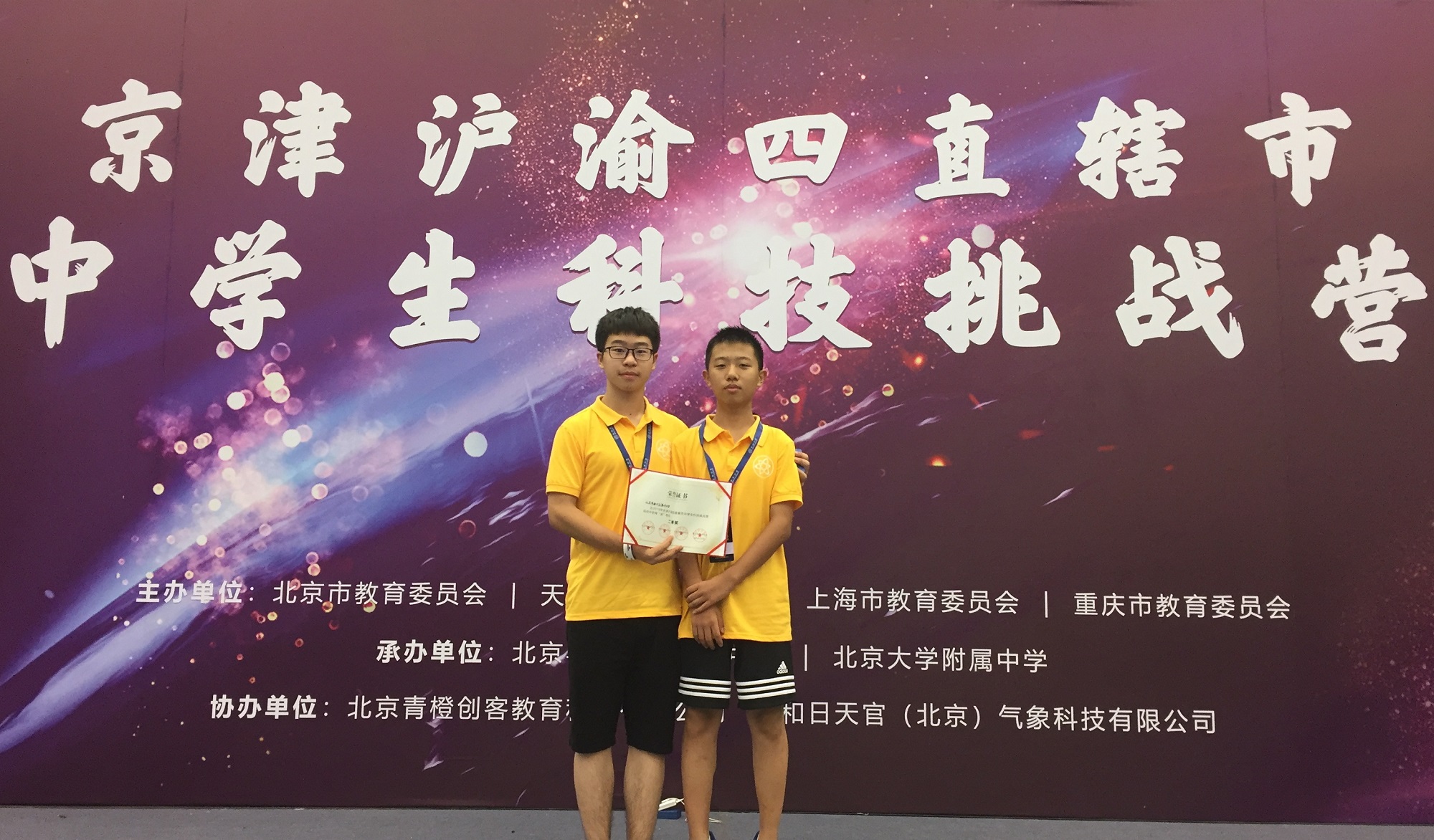 2018年8月2日至6日,由我校吴文君老师带队,崔长华、吴文君老师指导的八名科技社学生参加了京津沪渝四直辖市中学生科技挑战营活动。本次活动由北京市教委、天津市教委、上海市教委、重庆市教委联合举办。近400名来自四直辖市的师生怀着对科技、艺术的无限热爱参加了本次活动。经过激烈角逐,我校“造”团队获得全国二等奖的优异成绩。在24小时创客马拉松活动,我校匙子恒、王扩、刘浩庭等同学在近70组团队中,近70%淘汰率中脱颖而出,获得二等奖和三等奖的好成绩。