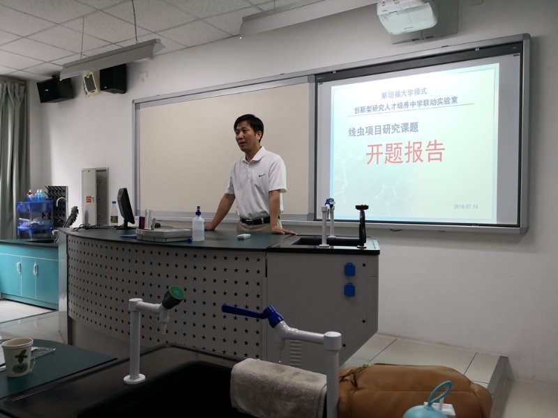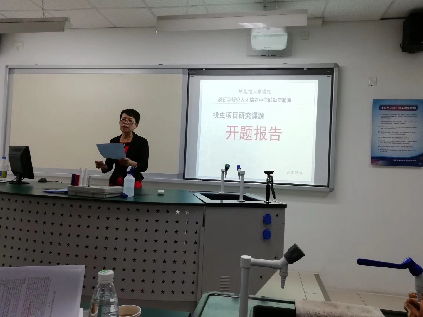 该项目是由通州区教委引入,由斯坦福大学神经科学领域资深科学家沈康教授委托中科院生物物理研究所进行指导。该项目旨在让学生通过项目式学习方式,亲身经历严谨规范的科学研究过程,参与前沿研究项目,让学生掌握规范的科学研究方法,培养学生的科学研究能力,发展学生的科学精神、科学研究意识和实践创新意识。2018年3月潞河中学正式启动此项目,该课程主要以线虫这一经典遗传学、表观遗传学、发育生物学、神经生物学模式生物为载体,引导学生就自己感兴趣的课题进行探究。迄今为止,课程进展过半,学生已经掌握了线虫实验的基本操作技能和相关理论知识,马上要进行的是创新项目的开题和实施。