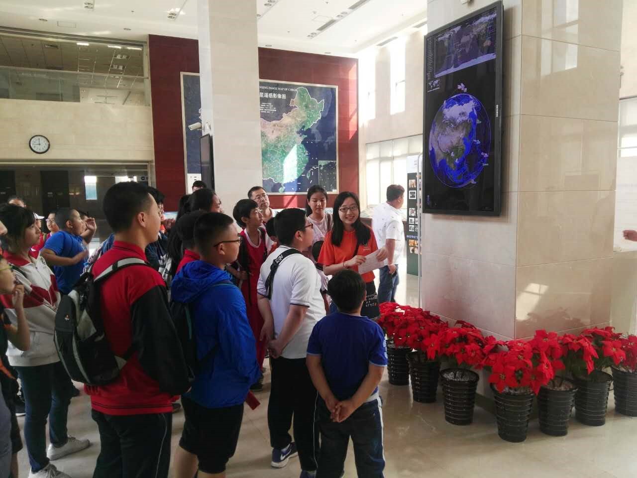 空间中心开放日活动主题为“用探索之眼开启航天梦想”,遥感所和光电所分别开放。师生们首先集体参观了遥感所。学生们首先参观了一楼展厅,在讲解员的解说中,大家了解了遥感卫星的主要工作原理,巨大的全国遥感图、巨型地球仪和很多高清的遥感影像图让孩子们大开眼界。