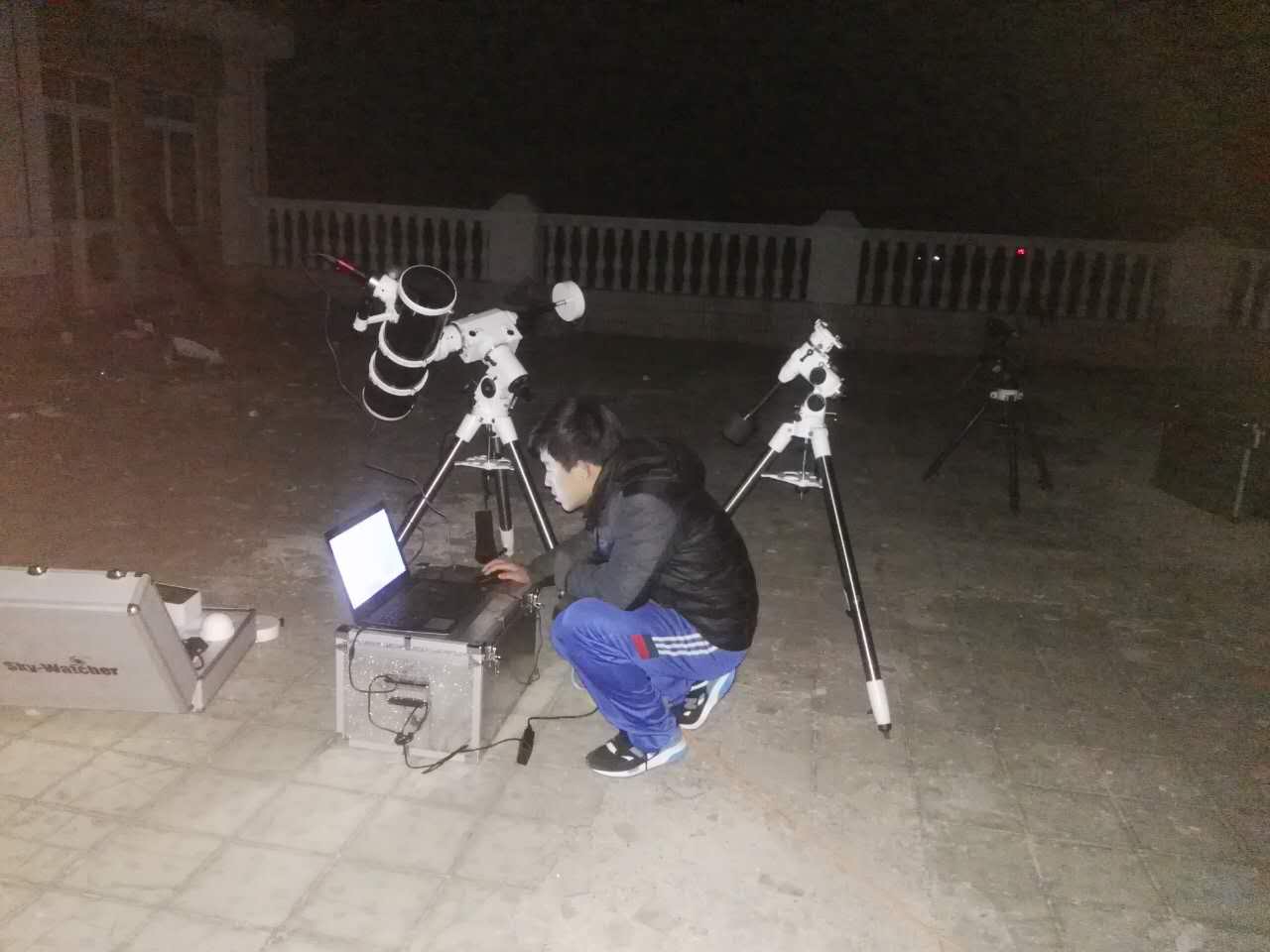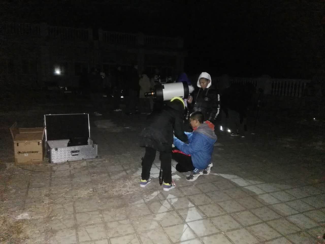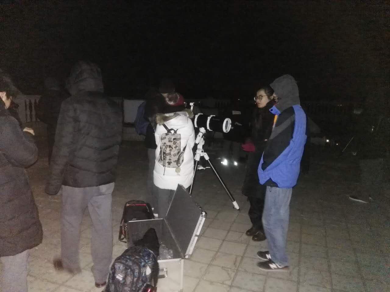 后半夜,大部分同学已经回去休息了。我校天文社的几个核心成员还在使用天文摄影CCD练习深空摄影以及月面的拍摄,摄影社的几个同学还在拍摄星轨,最晚的同学一直坚持到凌晨三点多。